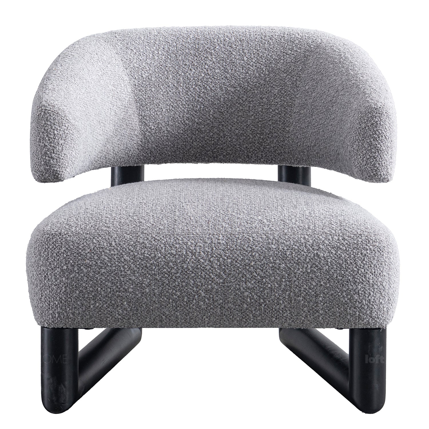 Modern Boucle Fabric 1 Seater Sofa MIROO combines soft texture with bold structure. Light gray seat, black legs, and ergonomic curves—perfect for stylish comfort.