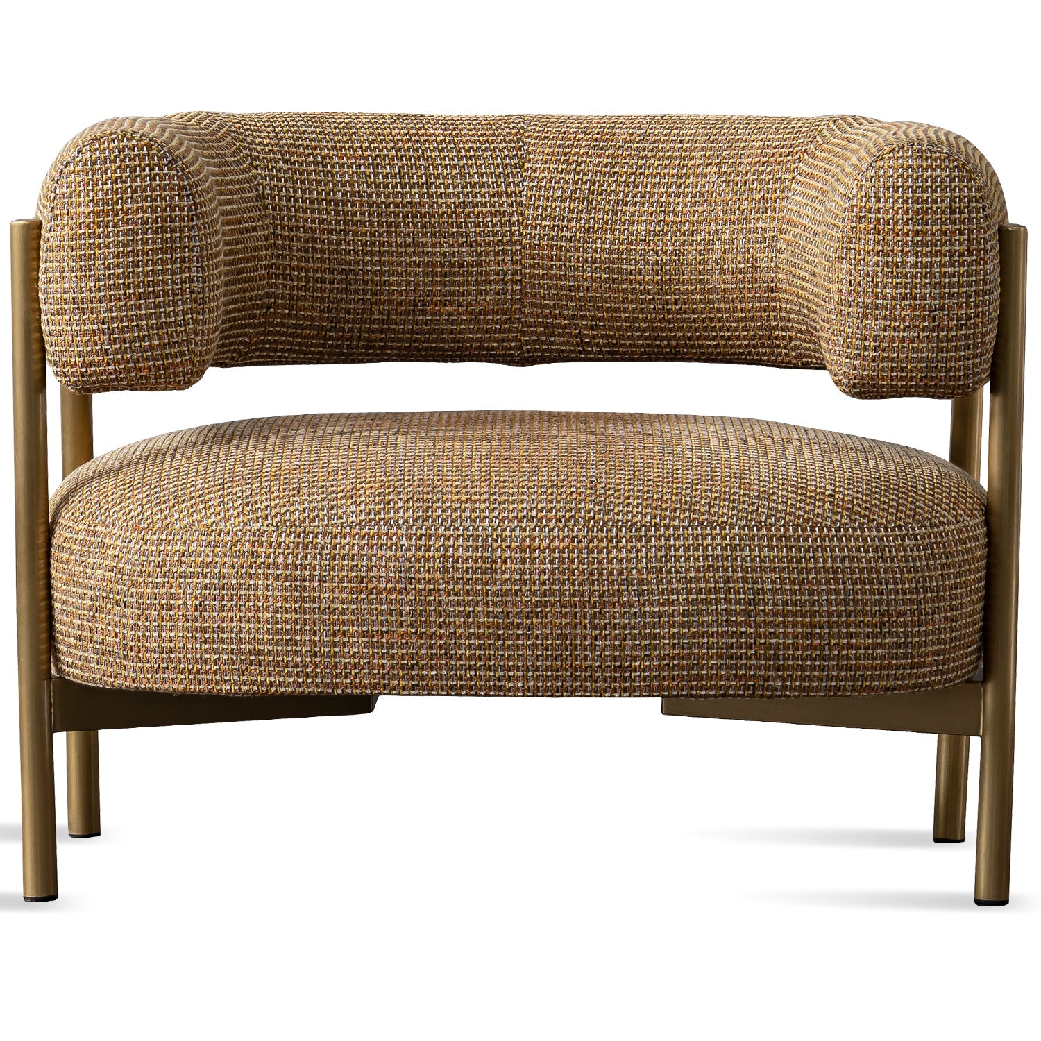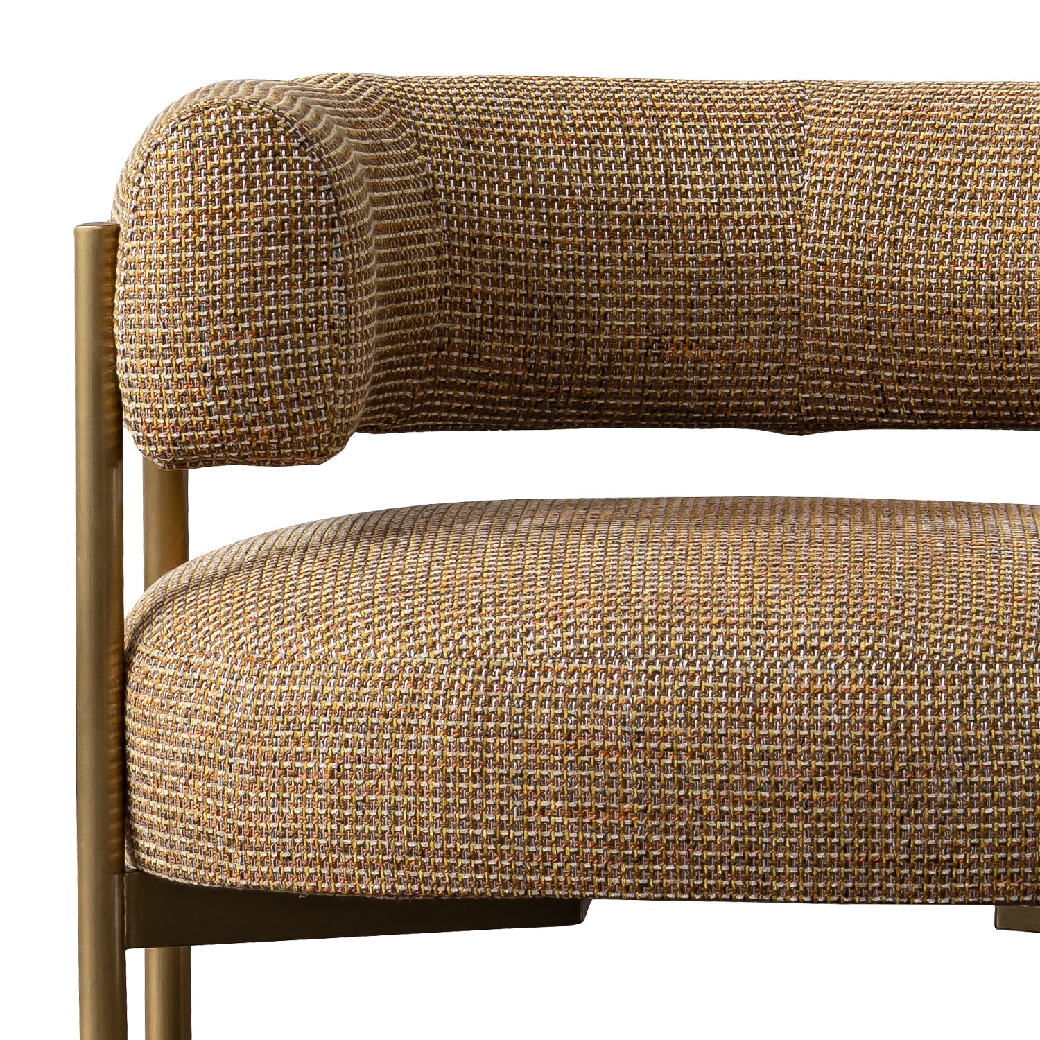 The combination of a gold stainless steel frame and mixed weave fabric gives the sofa a luxurious, contemporary aesthetic.