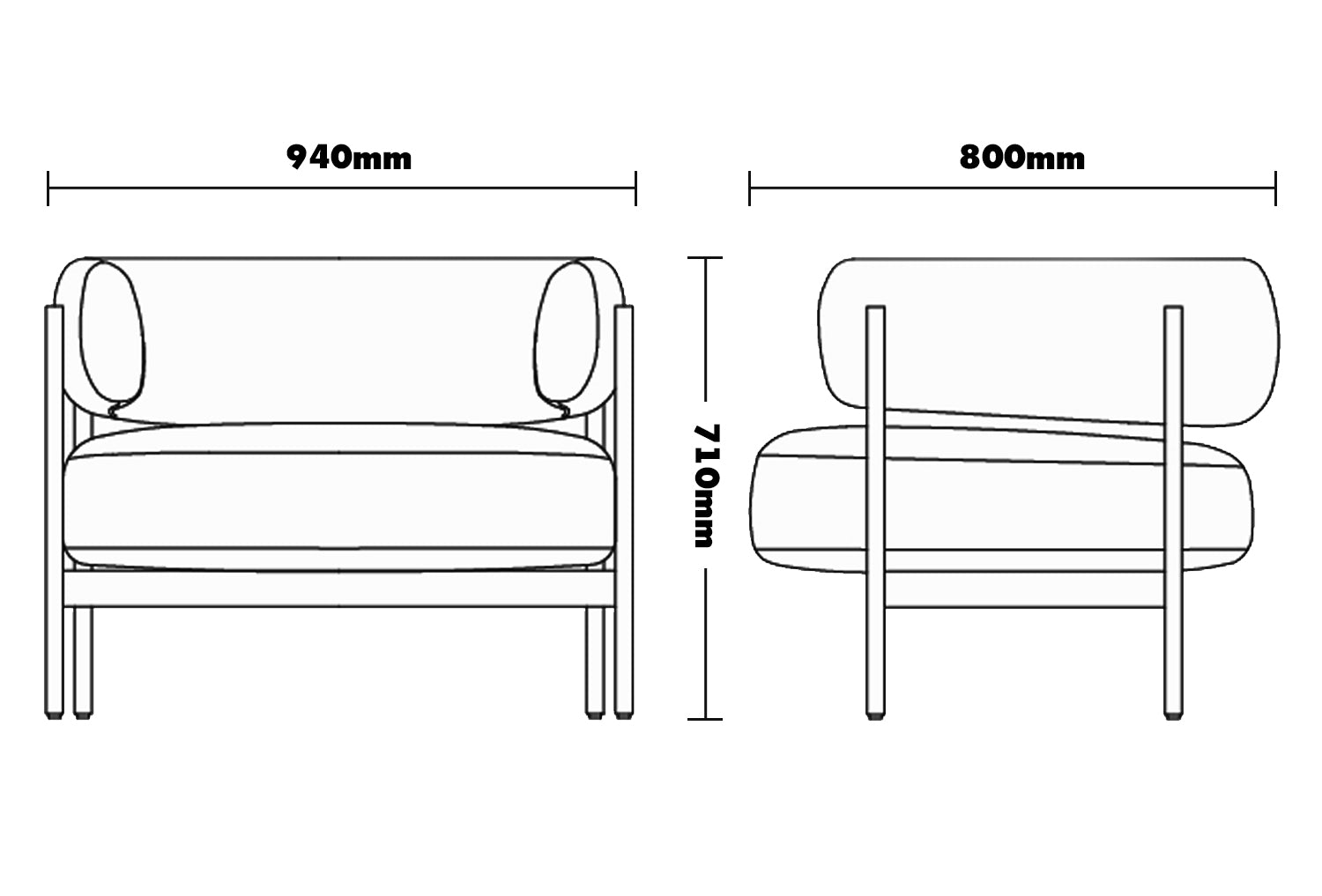 - L940 x W800 x H710mm