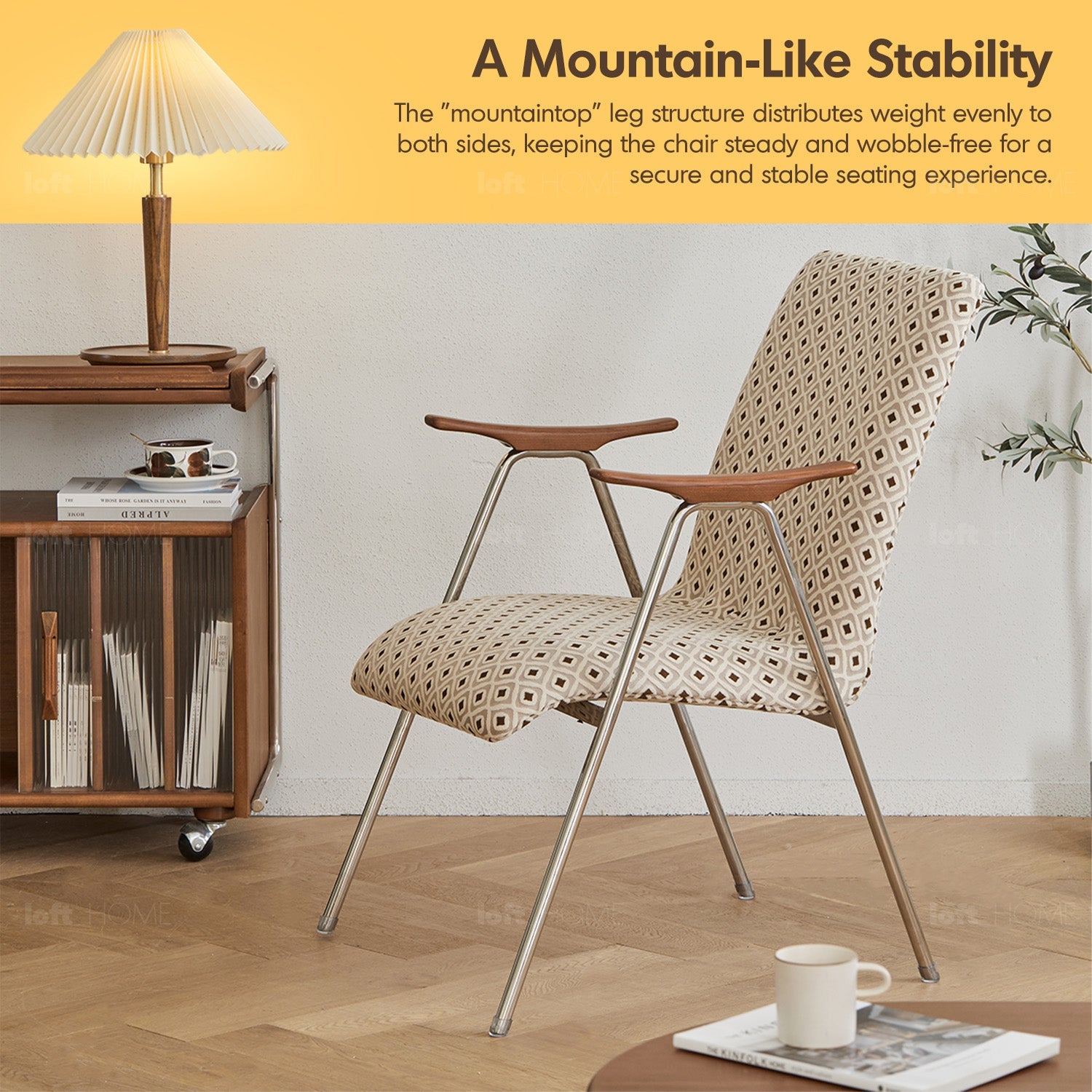 A mountain-inspired leg design distributes weight evenly, ensuring durability and wobble-free stability. |
