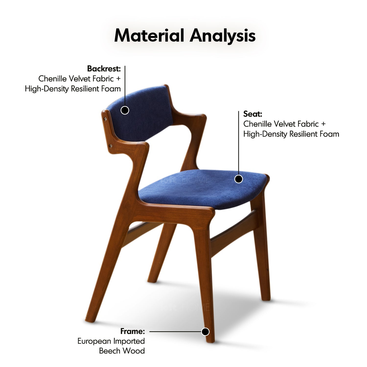 Vintage Beech Wood Chenille Velvet Fabric Dining Chair ZETA