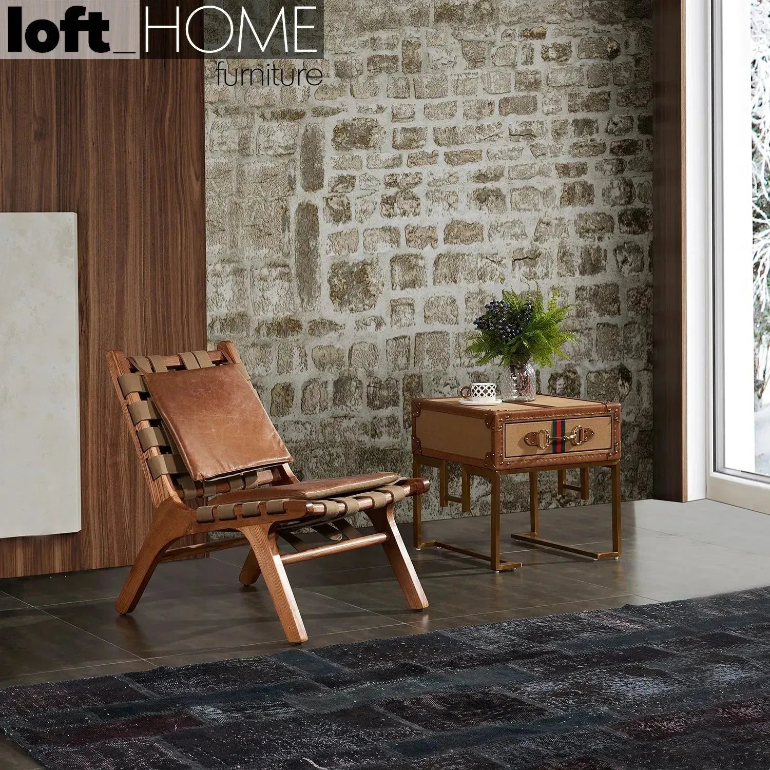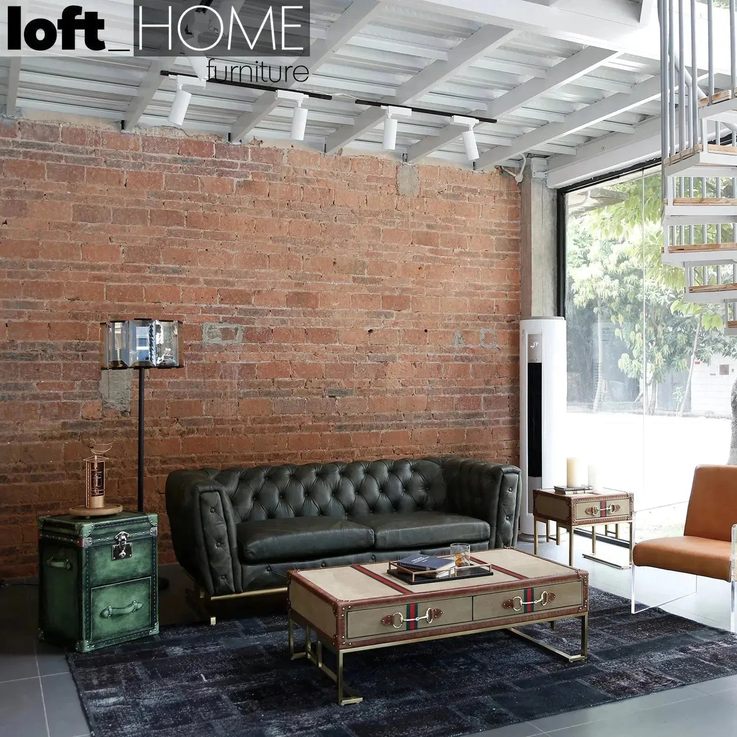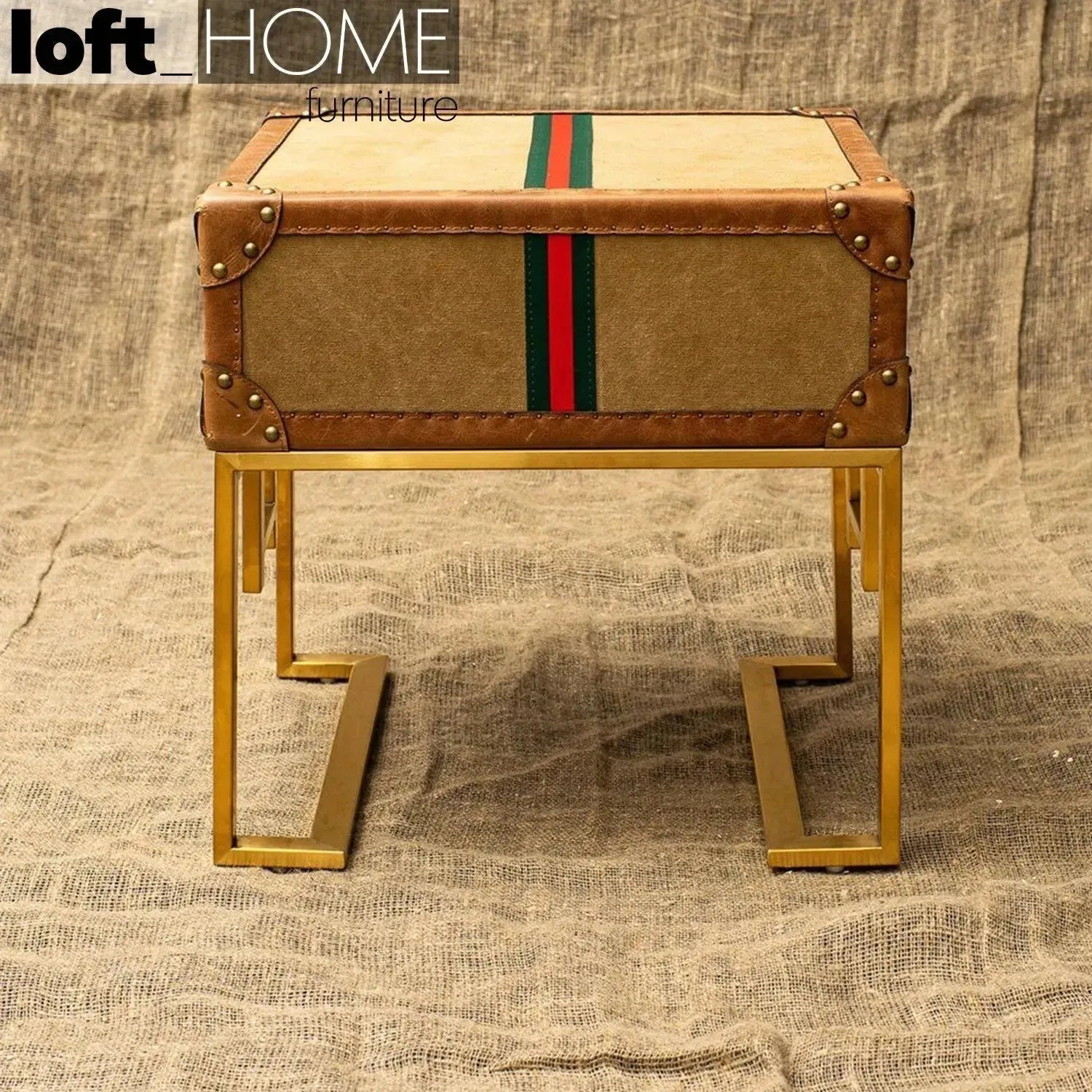 The industrial canvas side table has real corners of leather and a foliage canvas top that adds decorum and supports a green home. |