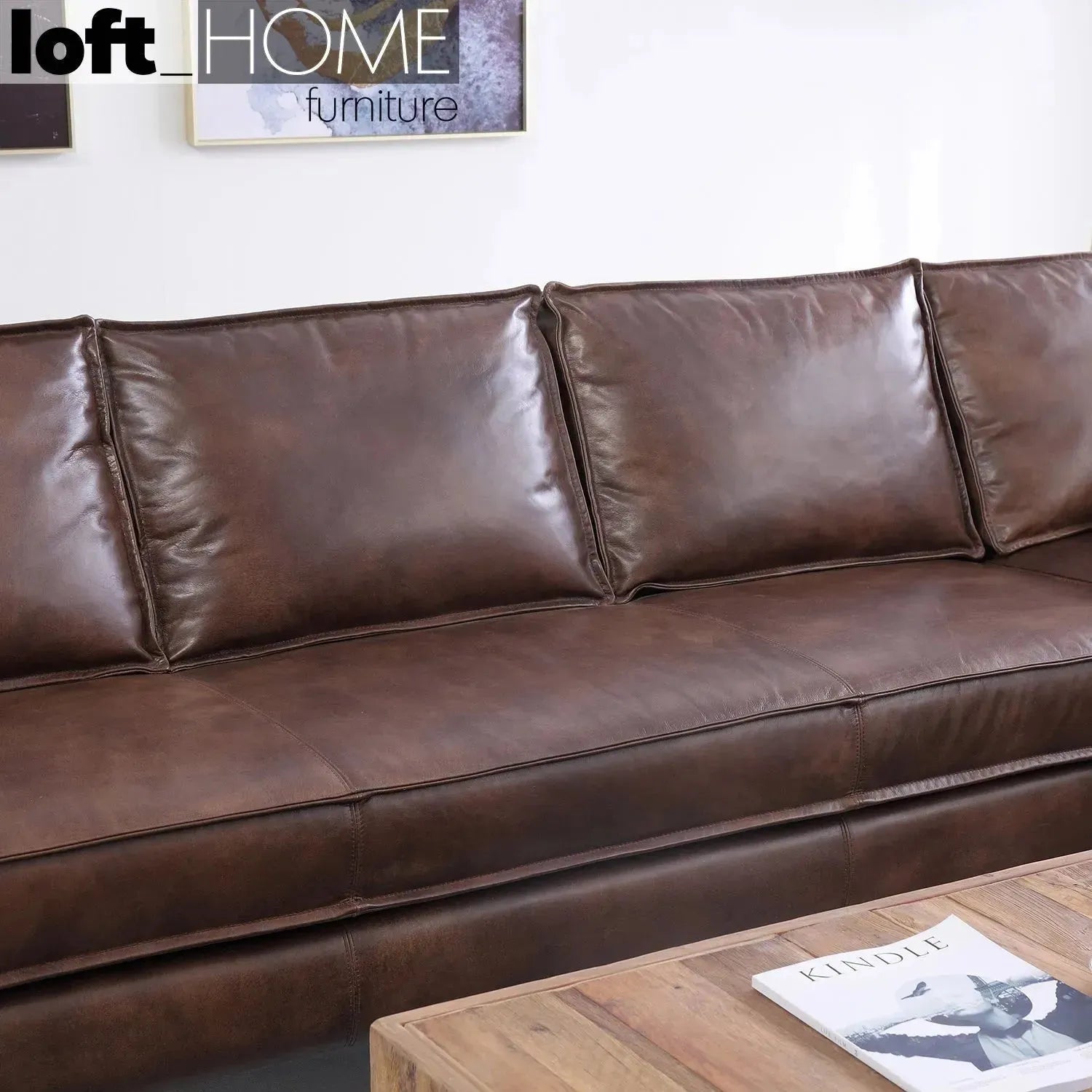 The Antique Genuine Leather L-Shaped Sofa combines classic style and modern convenience in a way that only the masters could have imagined. Made with real full grain cowhide leather, the Vintage L Shape Sofa has a warm and natural tonality. It also ensures lasting quality and classic style.