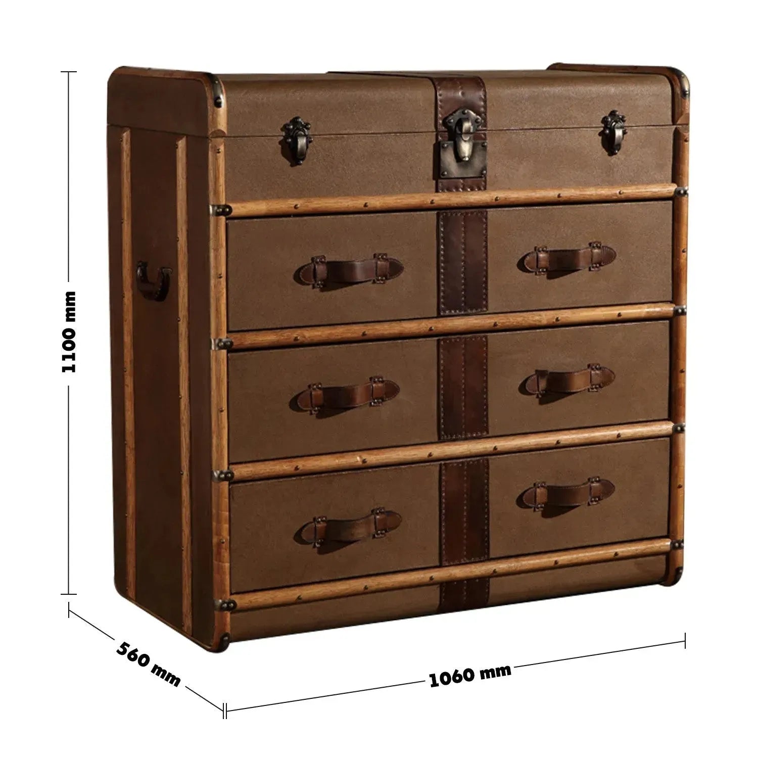 With the Antique-Master leather color, you can journey to a more luxurious age. This rich, deep color adds warmth and character to your living area. It also represents heritage. This cabinet, with its exacting craftsmanship and dimensions of L1060 x W560 x H1100 mm, packs your bags to come to take a look.