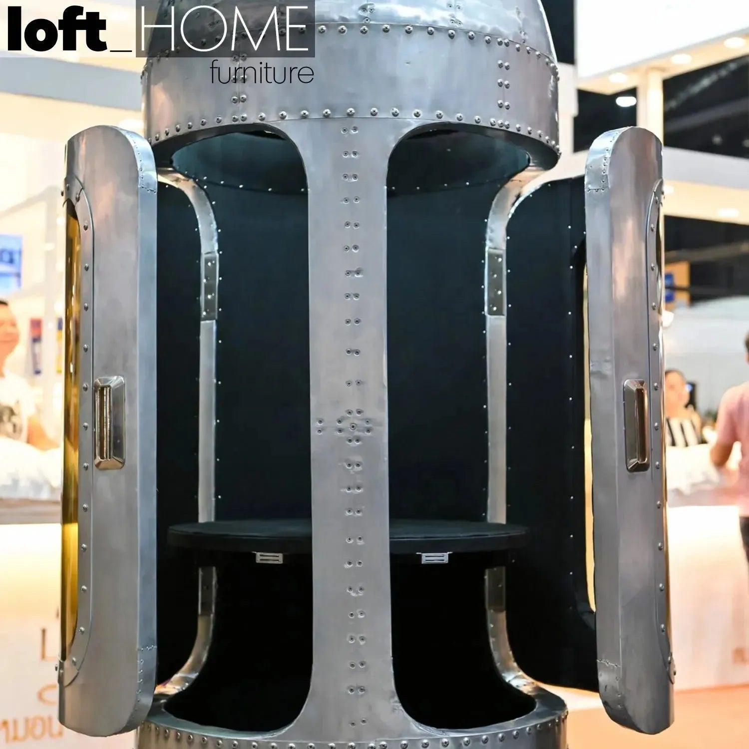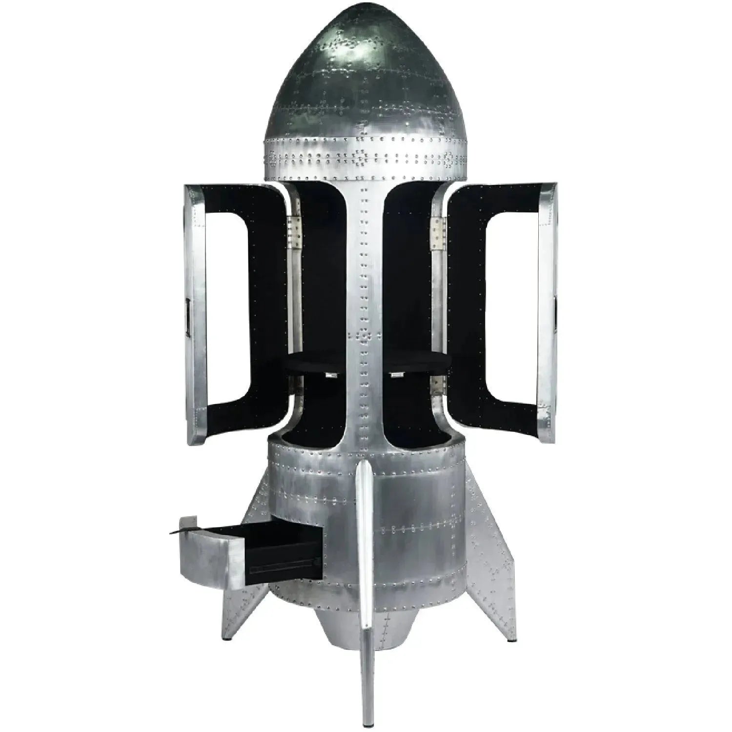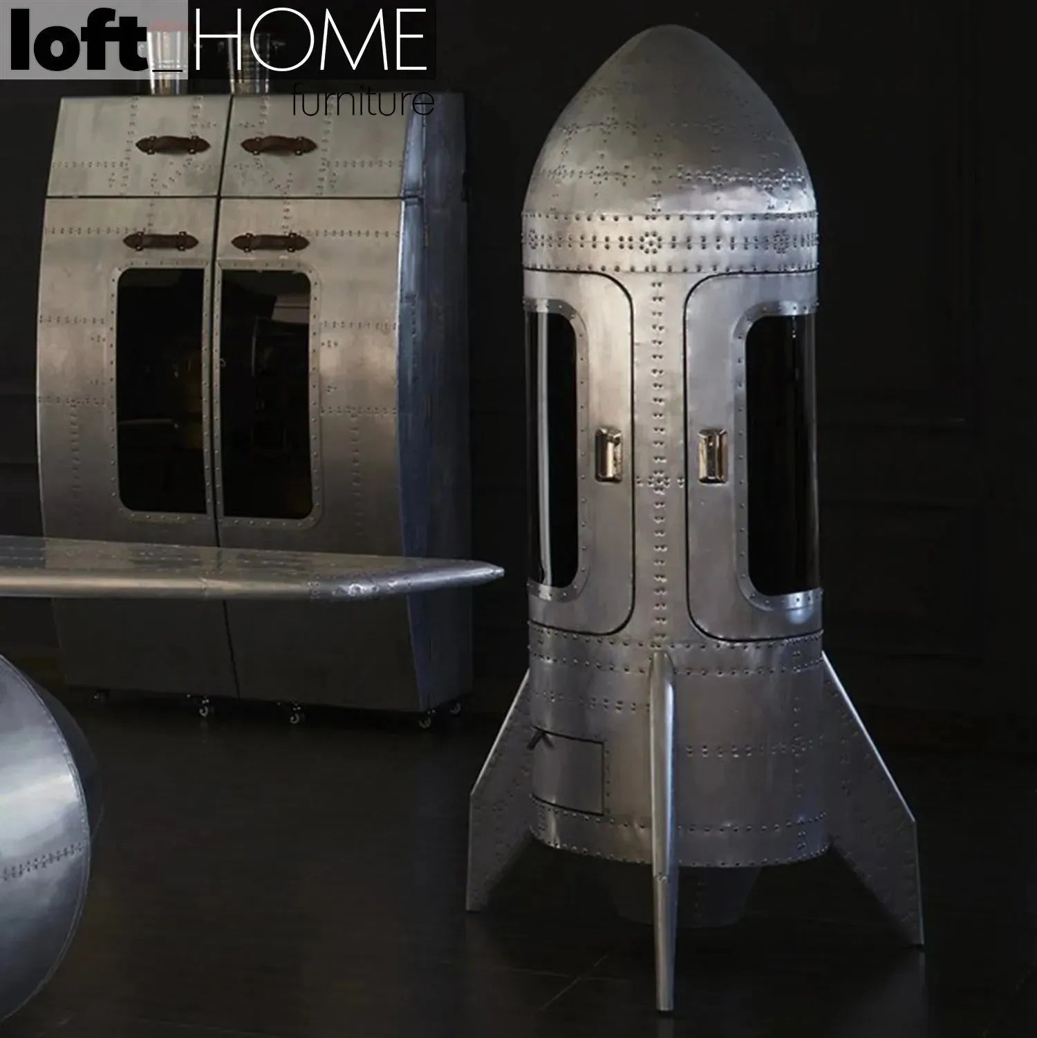 The aesthetic identity of this industrial aluminum wine cabinet is inspired by the distinctive space-age design of a Space Shuttle, giving it a truly sharp and futuristic look. |