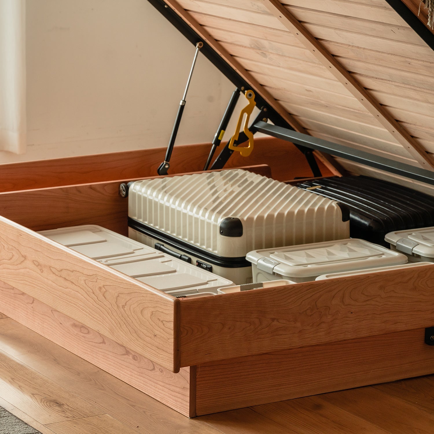 Scandinavian Cherry Wood Lift-Up Storage Platform Bed BLUE WHALE