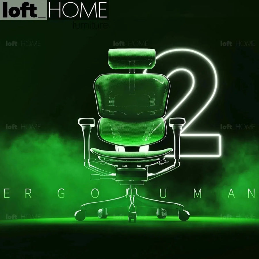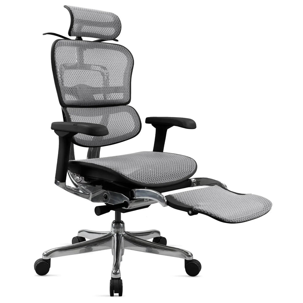 Modern Mesh Ergonomic Office Chair Grey Frame With Legrest ERGOHUMAN E2
