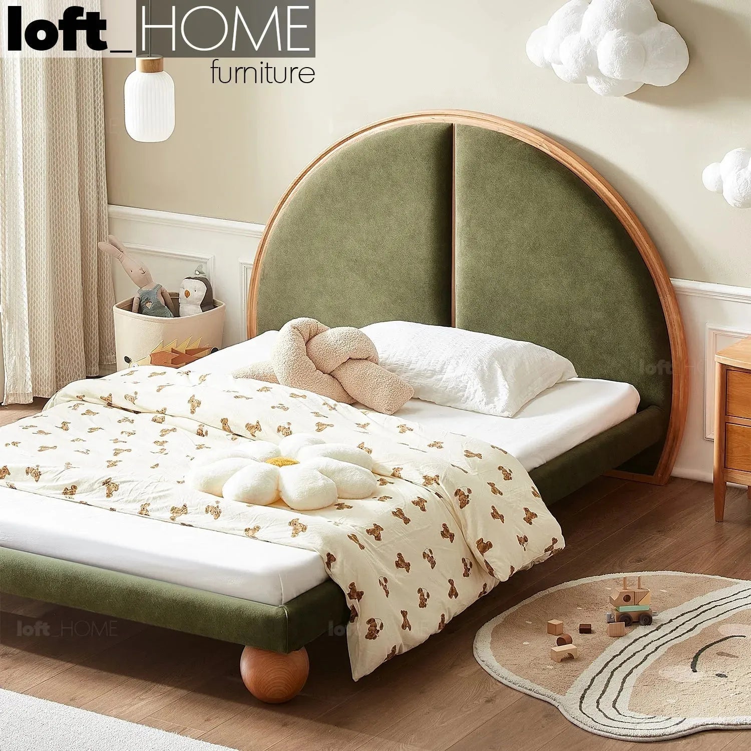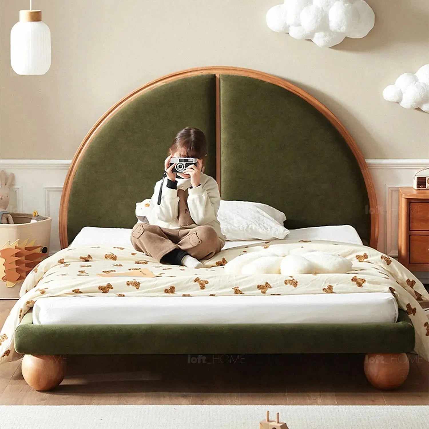 Introducing our adorable and charming kids' bed!Featuring a creative half-circle symmetrical headboard available in two materials, this bed is sure to spark joy. The added sponge filling ensures your little one can lean back in comfort.With solid round ball-shaped bed legs and smooth, rounded edges all around, we've prioritized safety to prevent any bumps or bruises.This thoughtful little bed is fit for a princess, providing your little one with a cozy and secure spot for sweet dreams.Say goodbye to restless nights and hello to a world of peaceful slumber for your precious one!