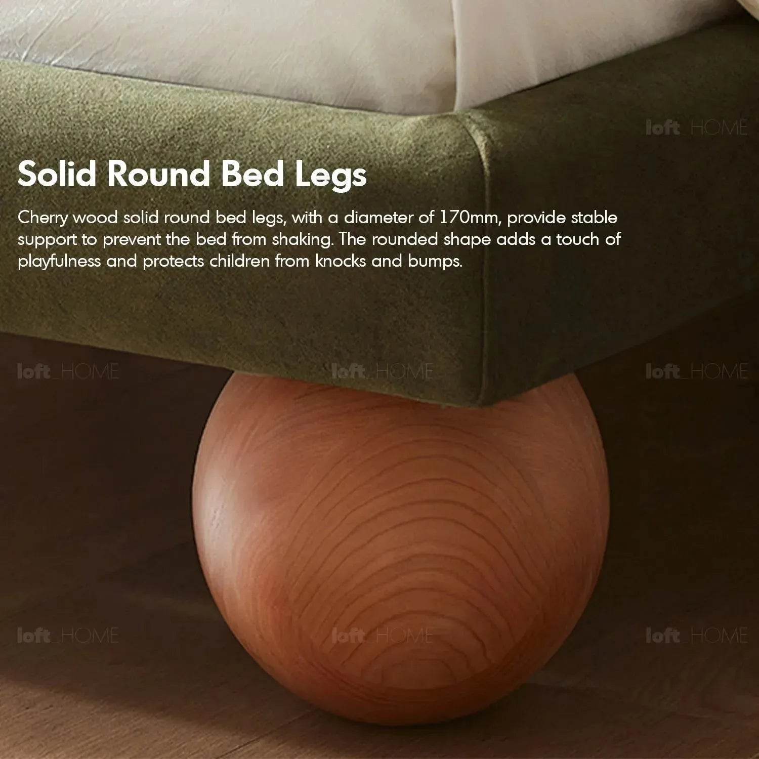 Cherry wood round ball bed legs offer greater stability and protection with rounded edges, safeguarding children from bumps and bruises.
