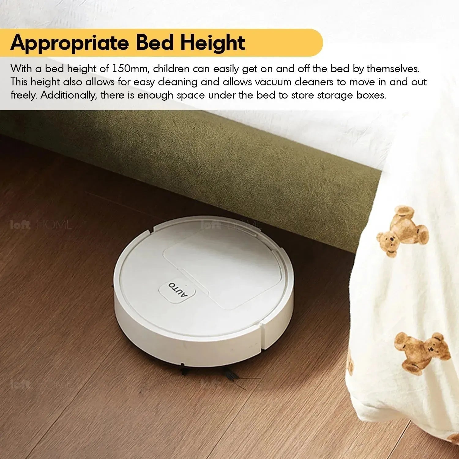 The suitable bed height allows children to get on and off the bed independently. With a ground clearance of 150mm, cleaning under the bed is worry-free.