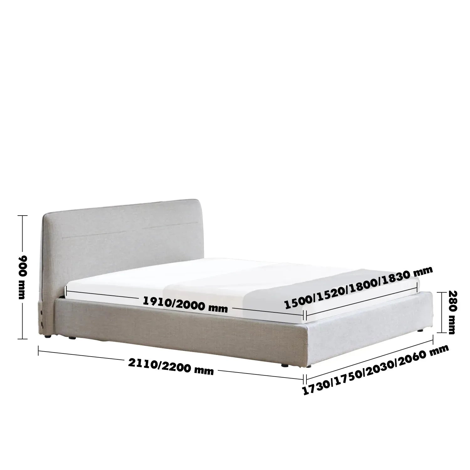 Suitable Mattress: W1830 x L1910mm