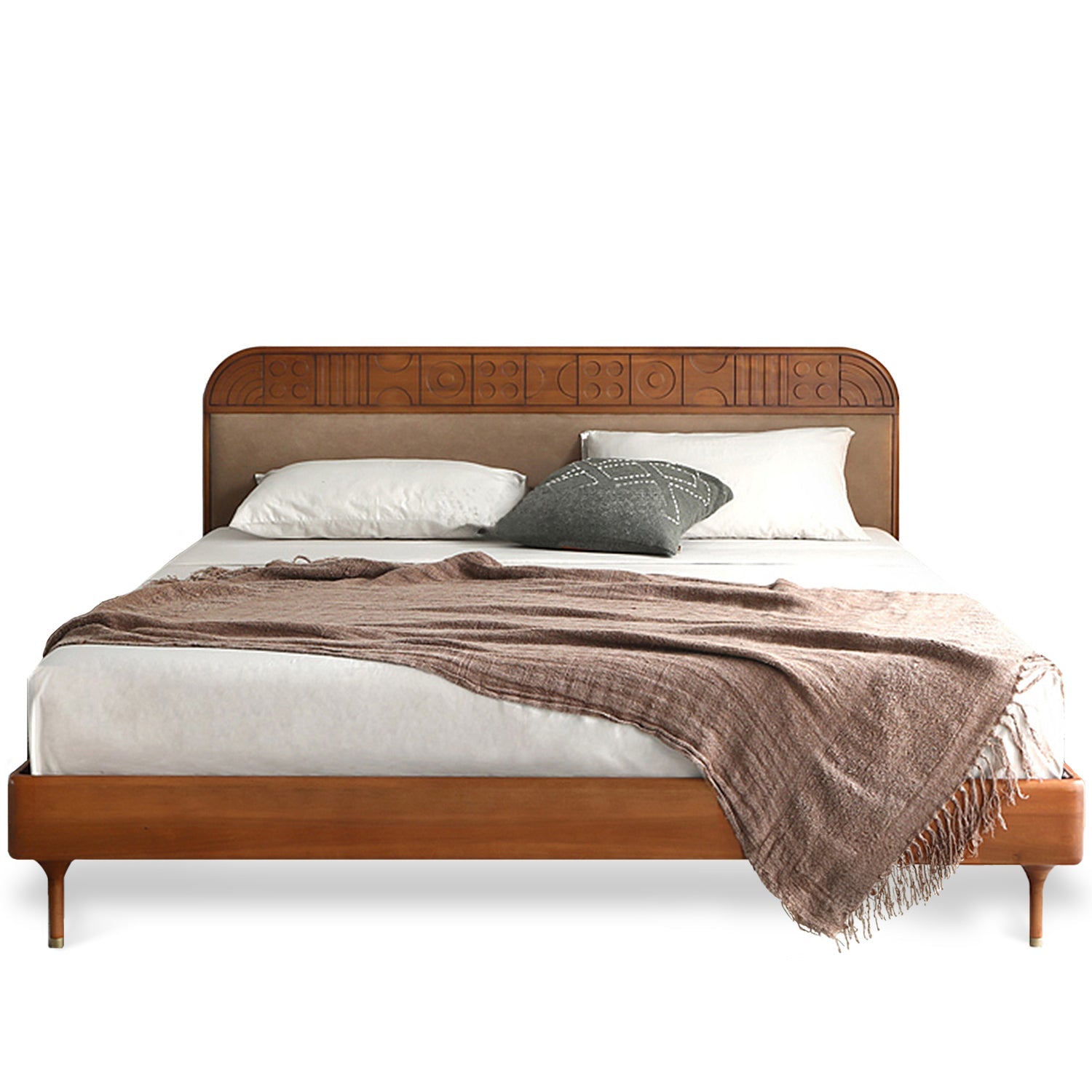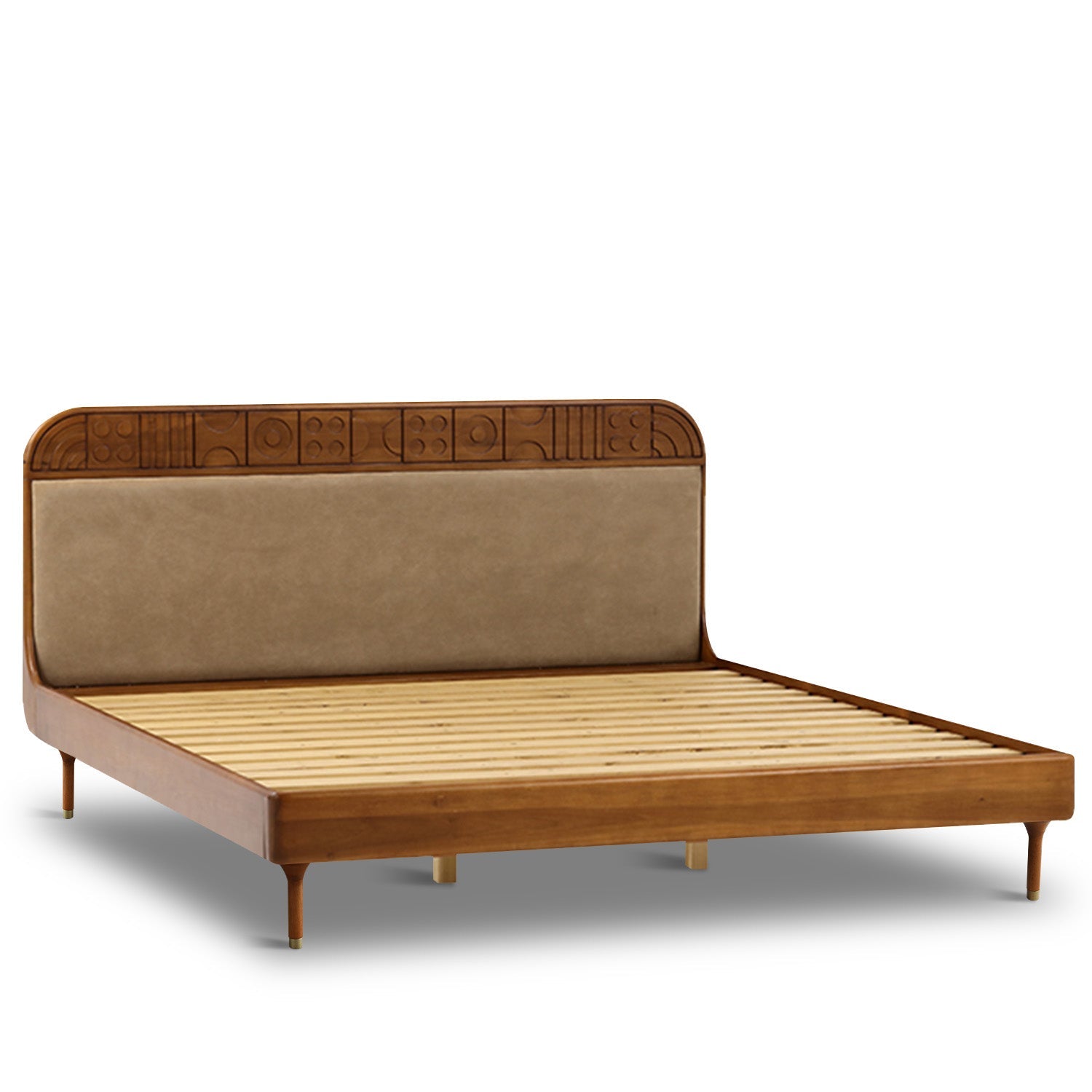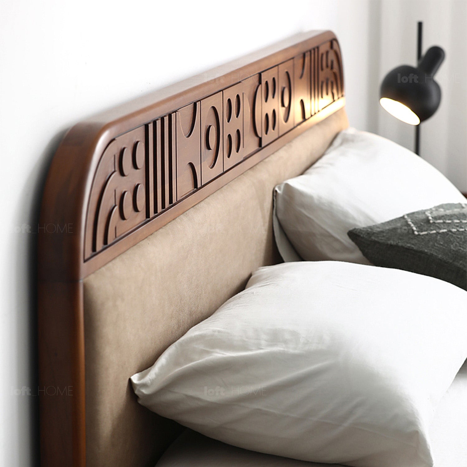 The headboard is covered in soft microfiber leather in a light brown hue, adding a touch of luxury to your bedroom. |