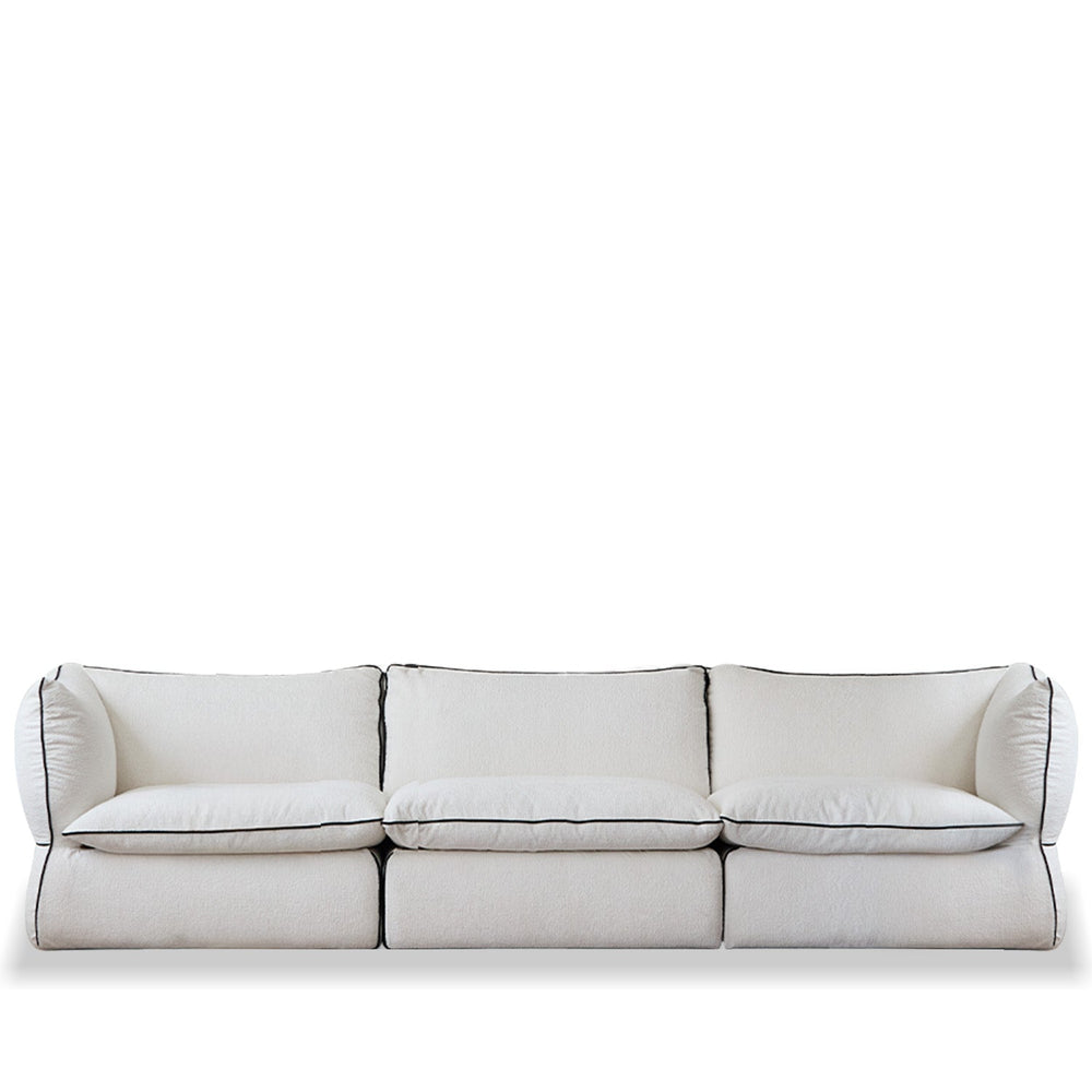 Minimalist cotton fabric 3 seater sofa como in white background.