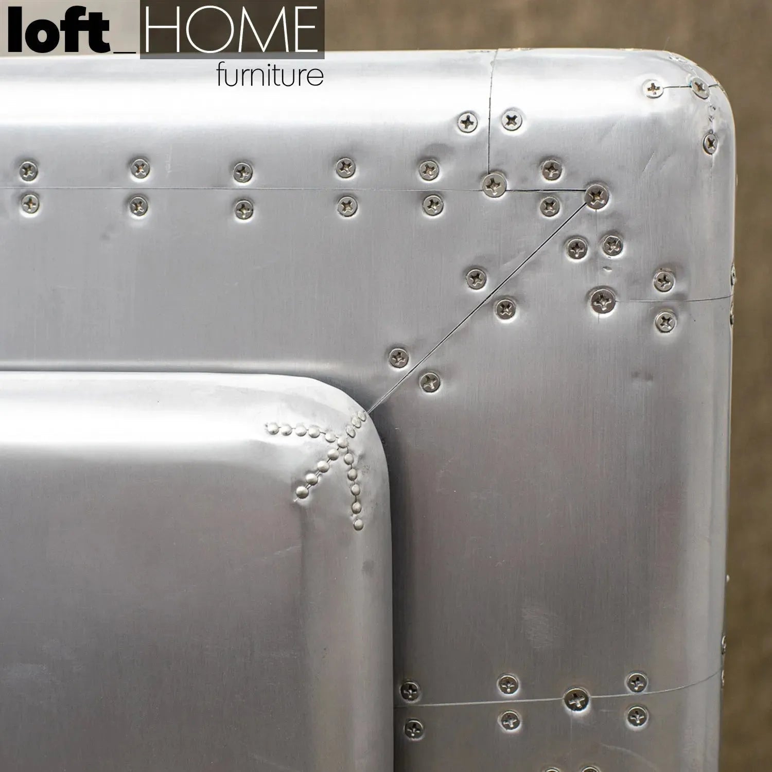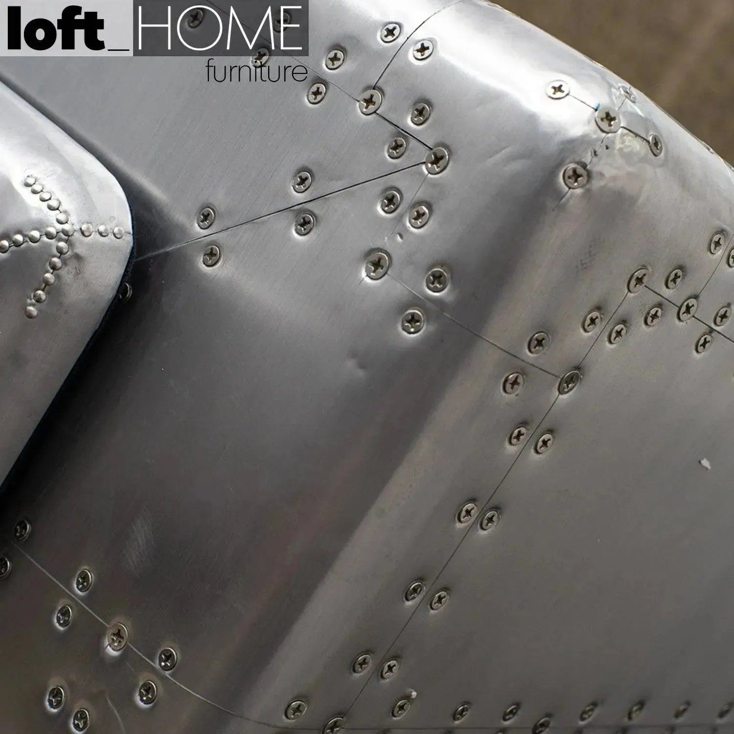 Aluminium in silver color. Exposed steel screws.