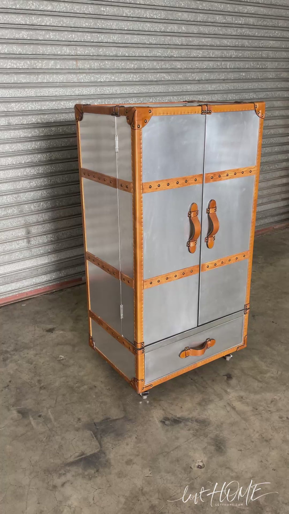 With our Industrial Aluminum Wine Cabinet, we bring you sophistication with wine and a hint of industrial flair. The cabinet has a sleek, modern appeal and can also withstand wear-and-tear due to its sturdy construction using magnesium and aluminum alloys. Real leather and brass accents contribute to the overall design raising it up as a refined, luxurious item.