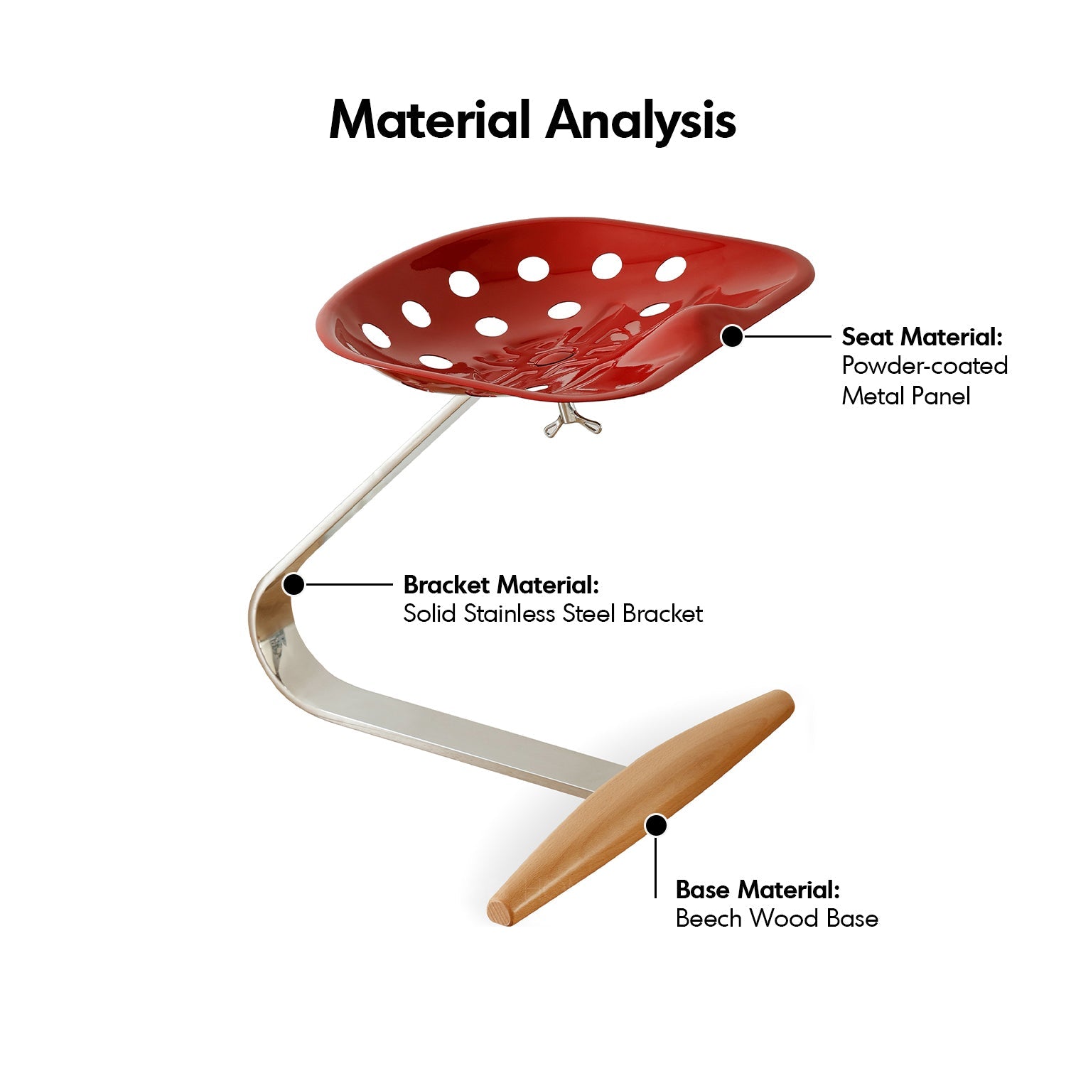 The seat features a one-piece stamped steel structure with a curved design that perfectly contours to the human body for exceptional sitting comfort.
