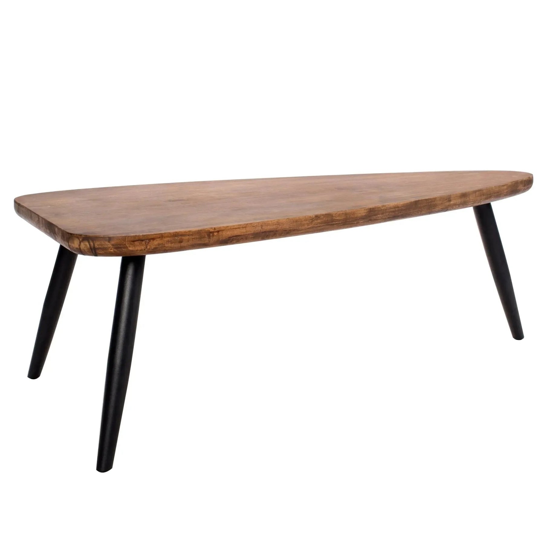 This coffee table has a wooden top and steel legs that emphasizes both its functionality as well as the beauty of this workmanship. |