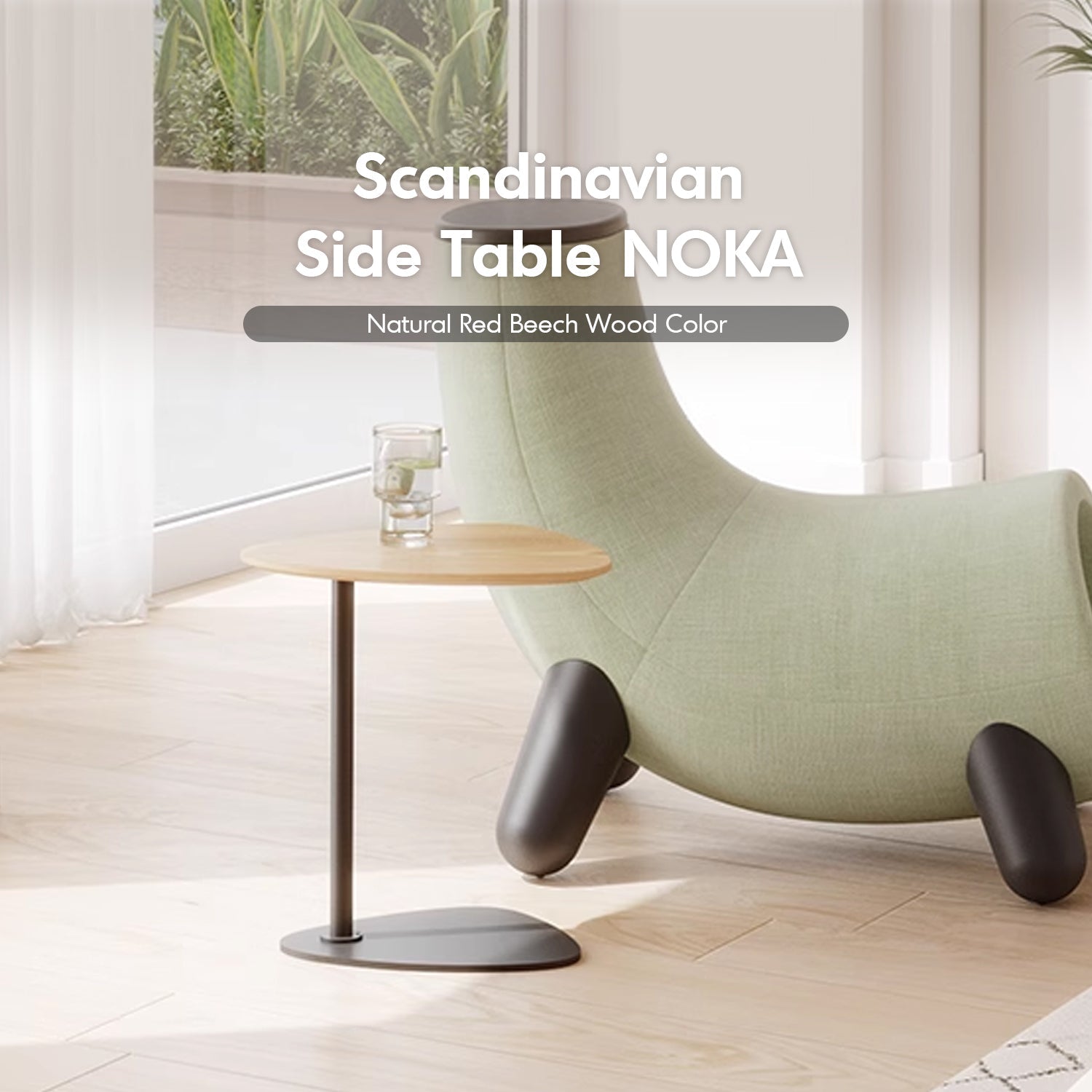 The Scandinavian Side Table NOKA brings elegance and modernity to any room. With its natural beech wood tabletop and sleek powder-coated metal base, it perfectly complements sofas, lounges, or beds. The cantilevered design adds style while providing functionality, making it ideal for your morning coffee, books, or decor. A blend of Scandinavian charm and practical design for contemporary living.