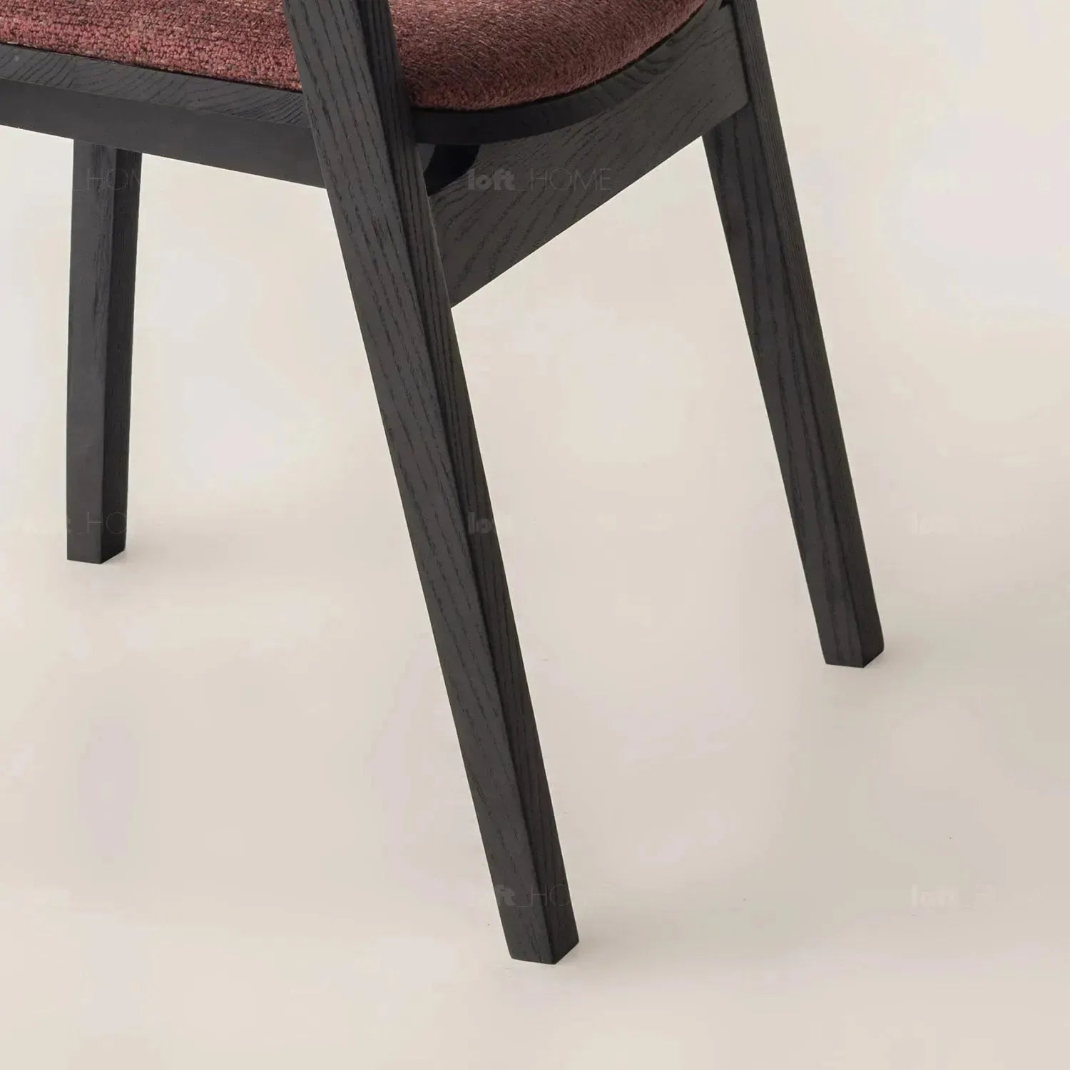 Enjoy your dining moments with our Japandi Wood Dining Chair in style and harmony with nature. The chair is comfortable and consists of a polyester-acrylic fabric blend, composed of 95 percent polyester and the remaining percentage acrylic. Its scratch-resistant lacquer ensures sustainability and its solid Ash Wood Frame provides a sturdy support for the product.