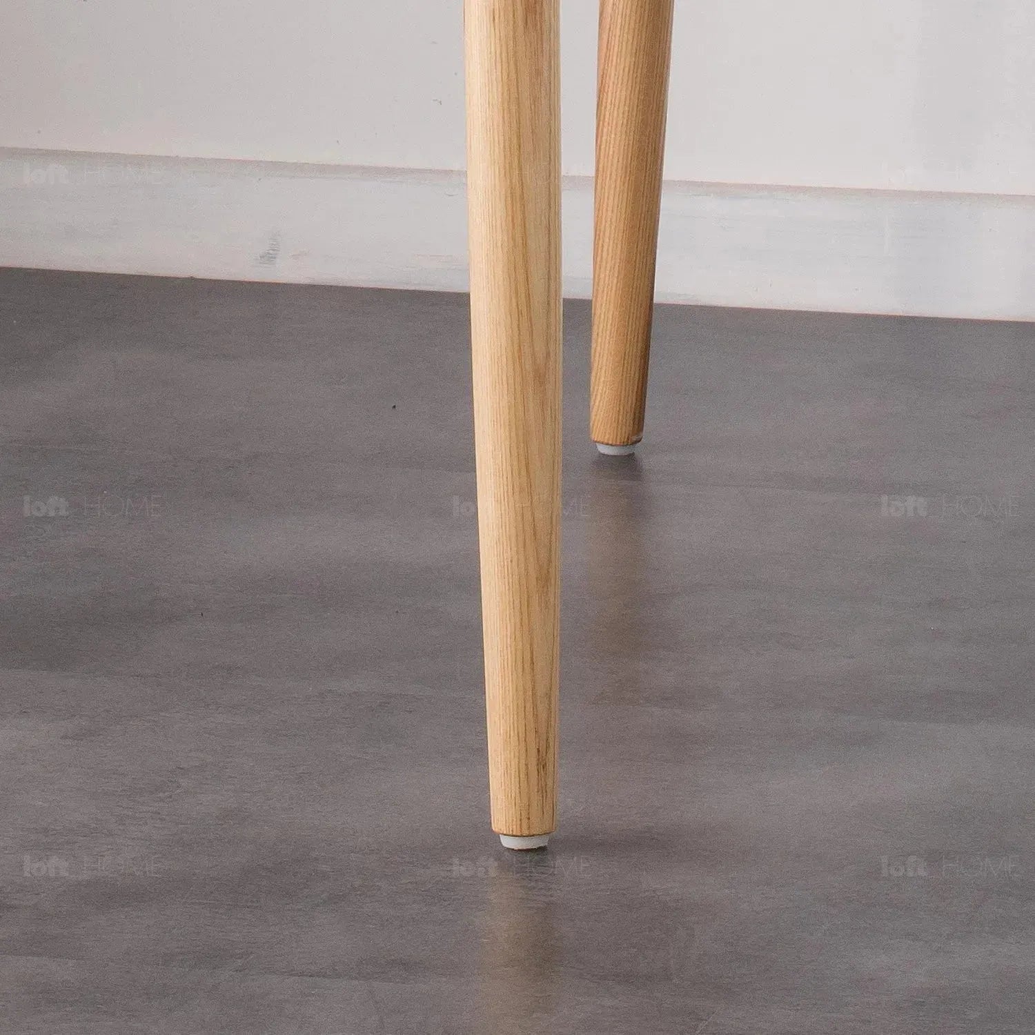 Concede the specificity of each chair through description of the chair__ existing variations in color and woodgrain. Each piece comes with its own unique feel and vibe because of the naturally occurring knots and imperfections that define solid ash wood. |