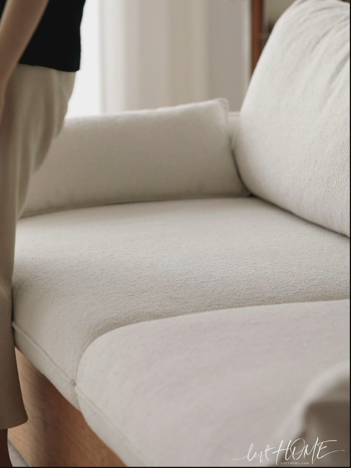 Japandi Boucle Fabric Pine Wood Storage 2 Seater Sofa KANGAROO