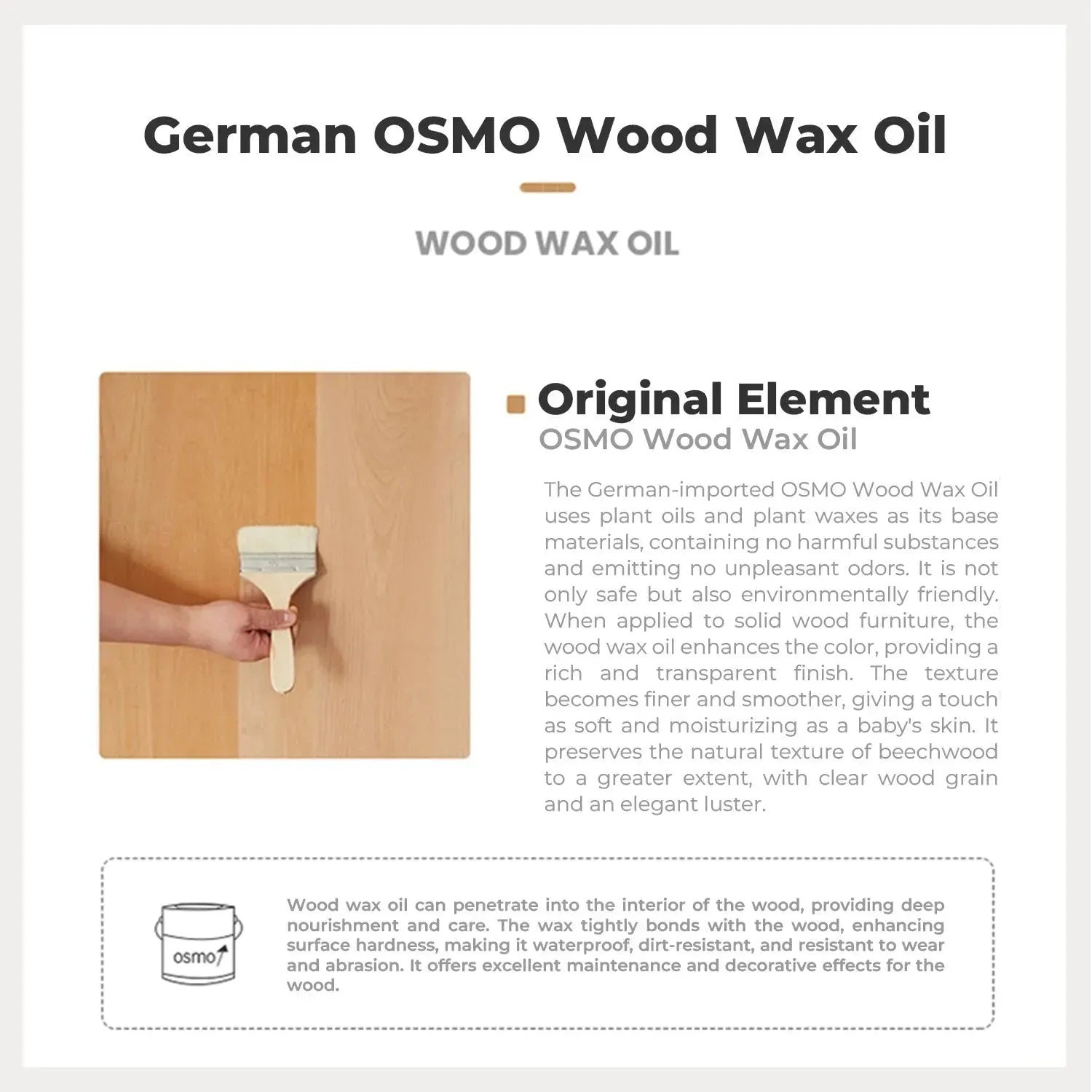 1. Tightly bonds with the wood, providing durability and abrasion resistance, enhancing the texture.