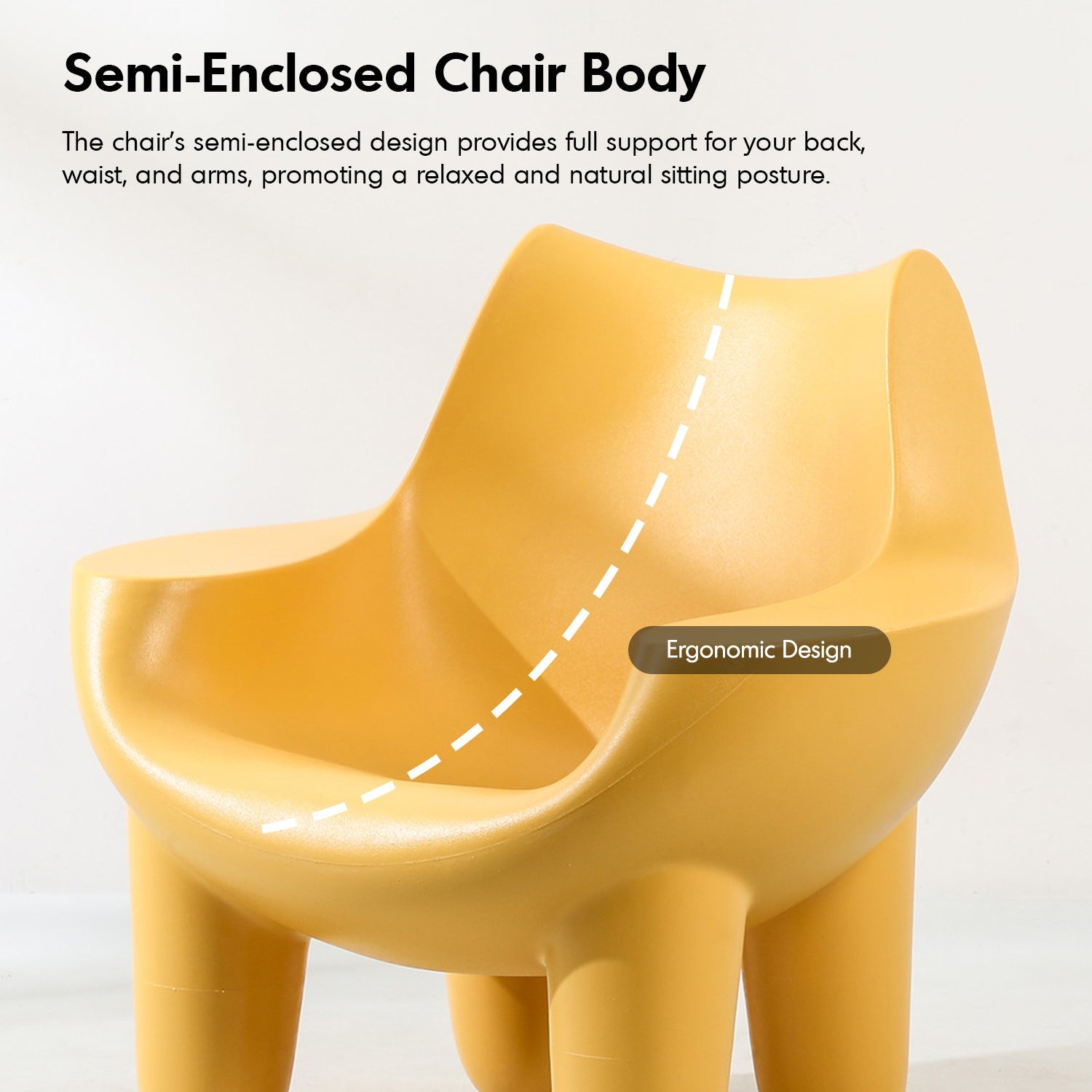 The thoughtfully designed semi-enclosed chair body provides ergonomic support for your back, waist, and arms, ensuring a relaxed sitting posture.