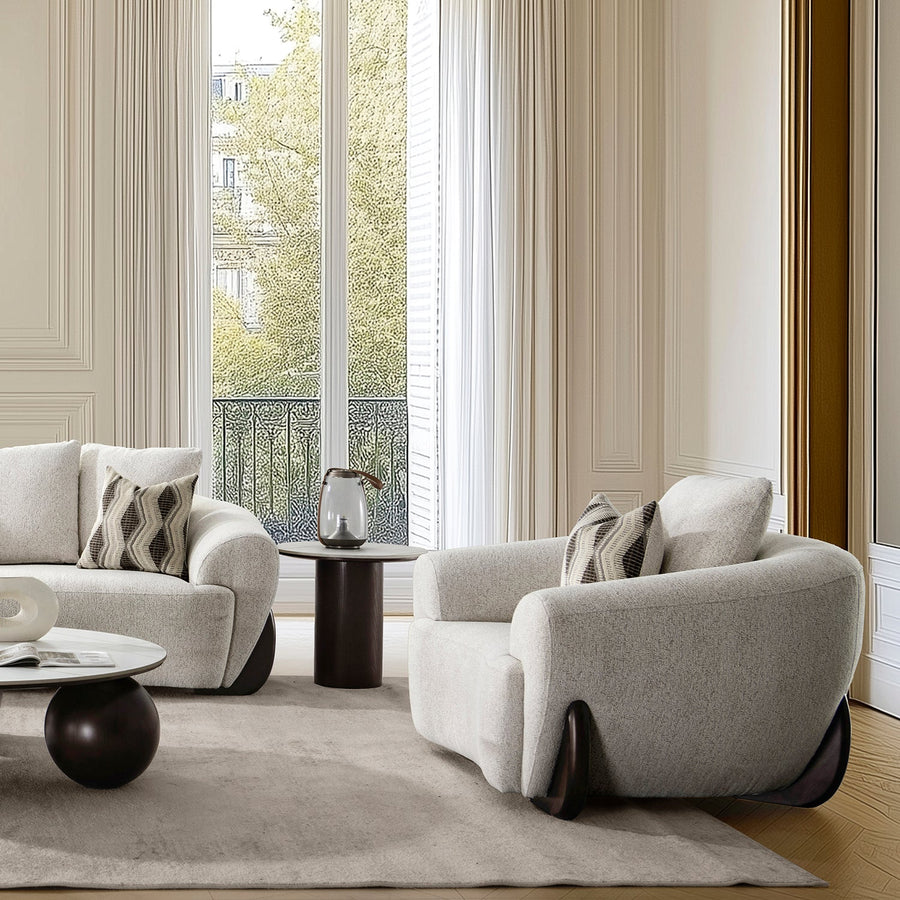 Cream Boucle Fabric 1 Seater Sofa CURLY