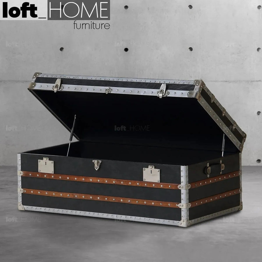 A blend of wood and metal accents, this table offers a robust industrial style with a spacious storage compartment accessible via the lift-up top.
