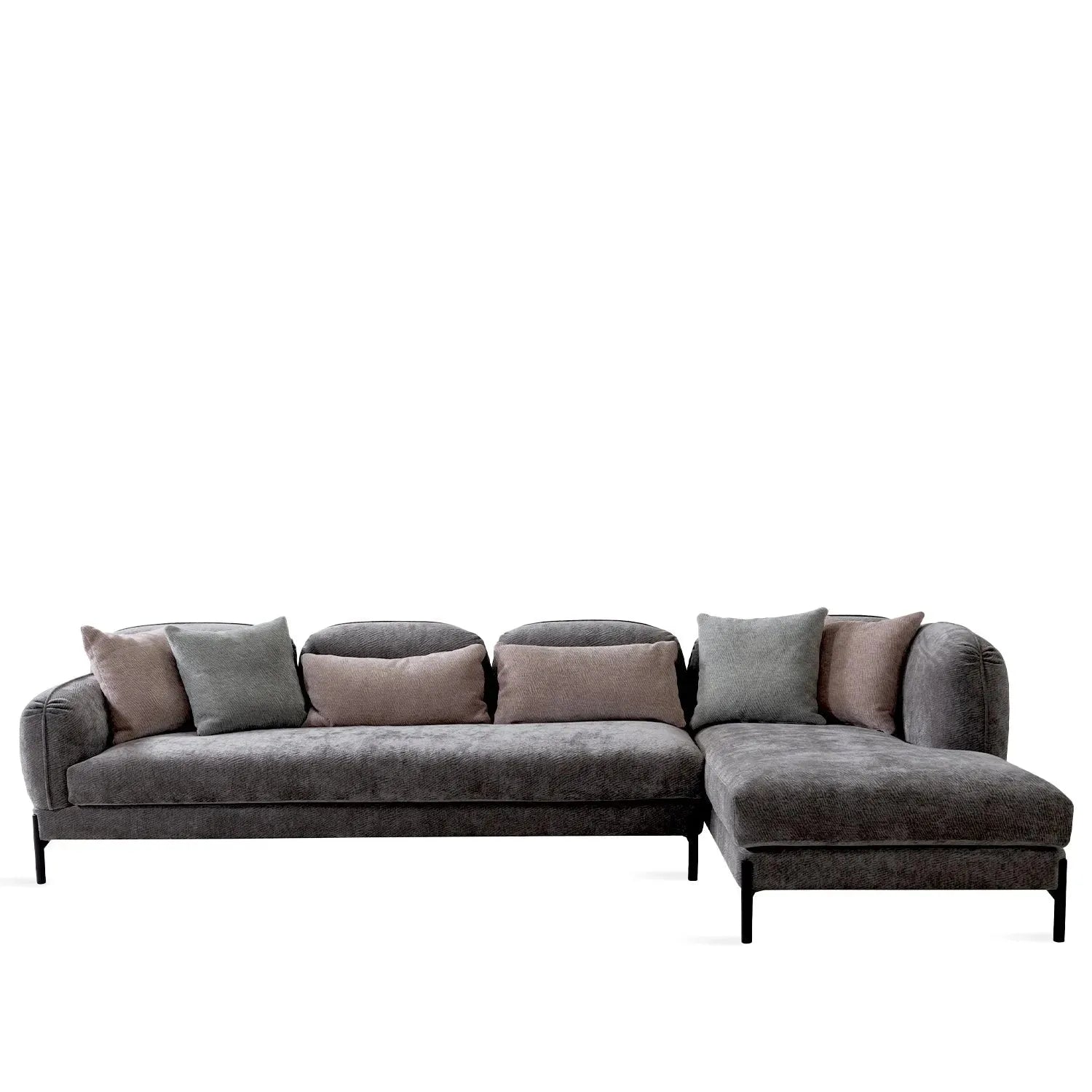 Minimalist Chenille Velvet Fabric L Shape Sectional Sofa STYLISH 4+L features sturdy construction designed for long-lasting durability. Its exceptional comfort and luxurious feel are complemented by durable chenille velvet fabric, ensuring both elegance and resilience. This sofa is easy to maintain, offering practical sophistication for versatile living spaces.