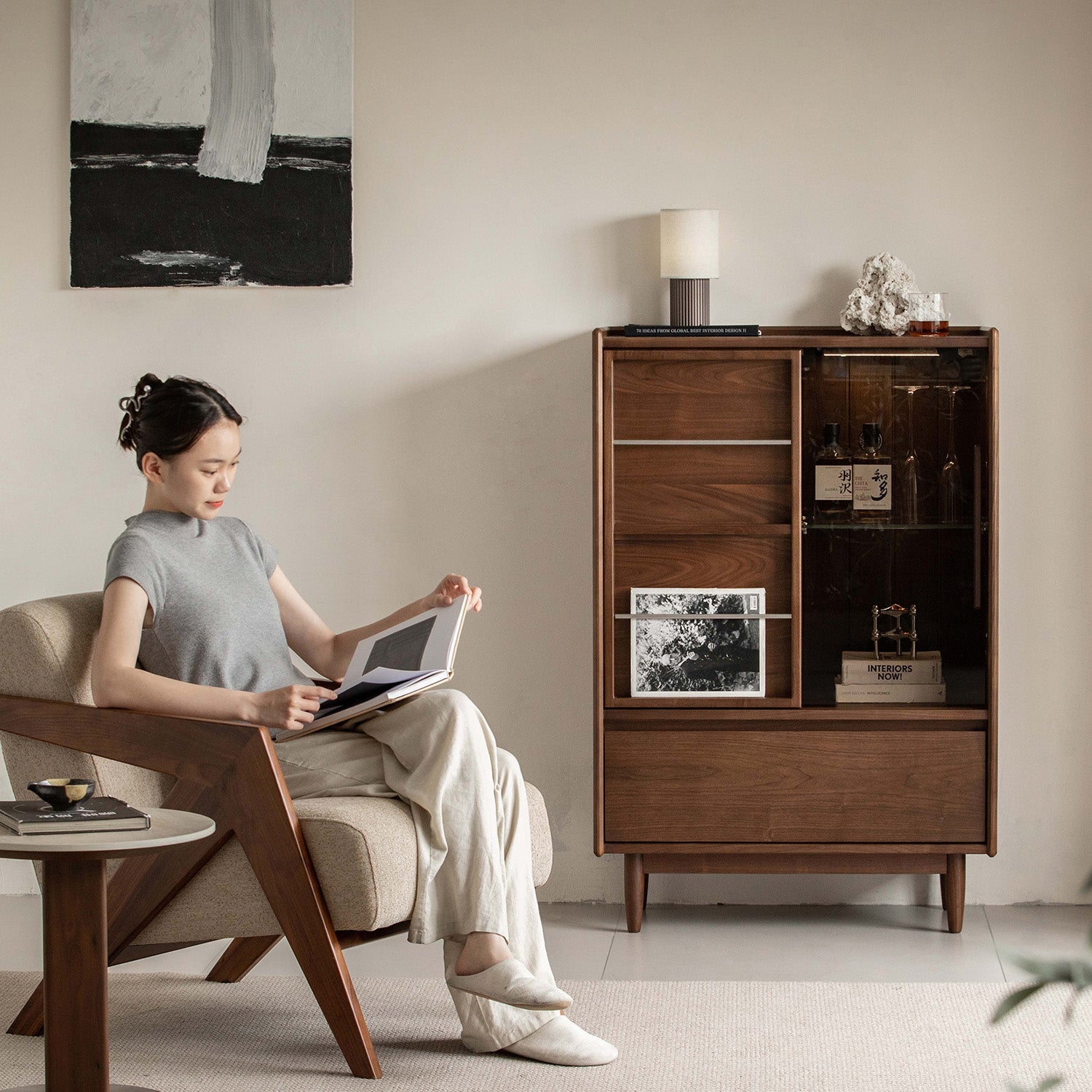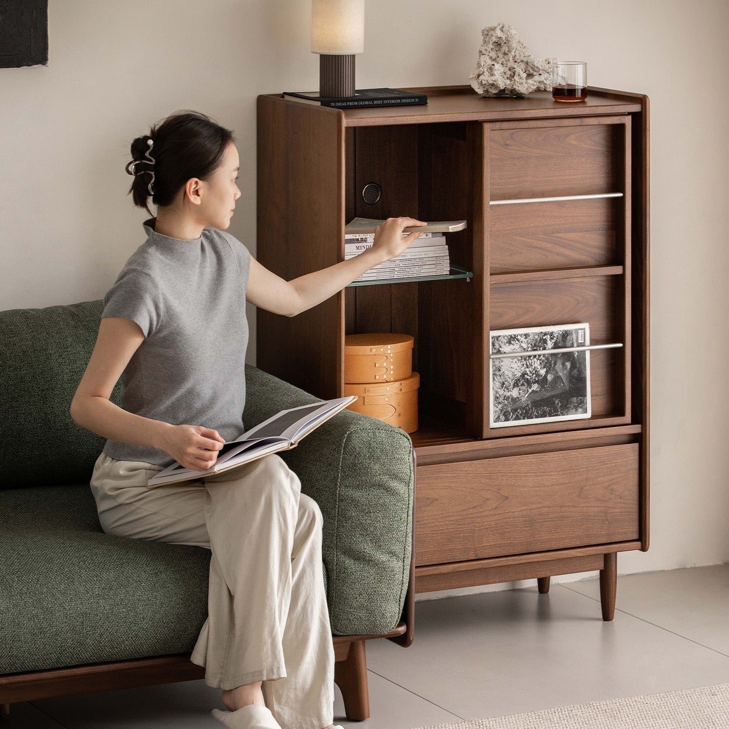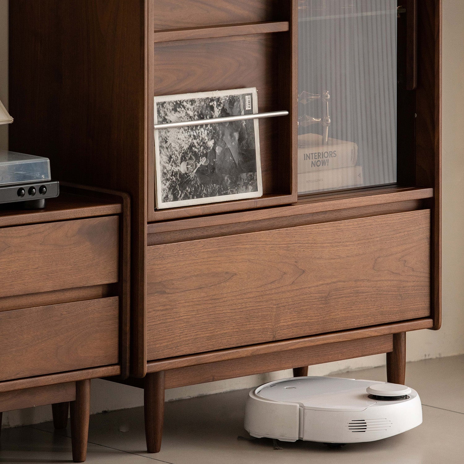The cabinet is crafted from solid walnut wood, known for its rich tone and strong structure, offering long lasting durability and a premium feel you can trust for daily use. |