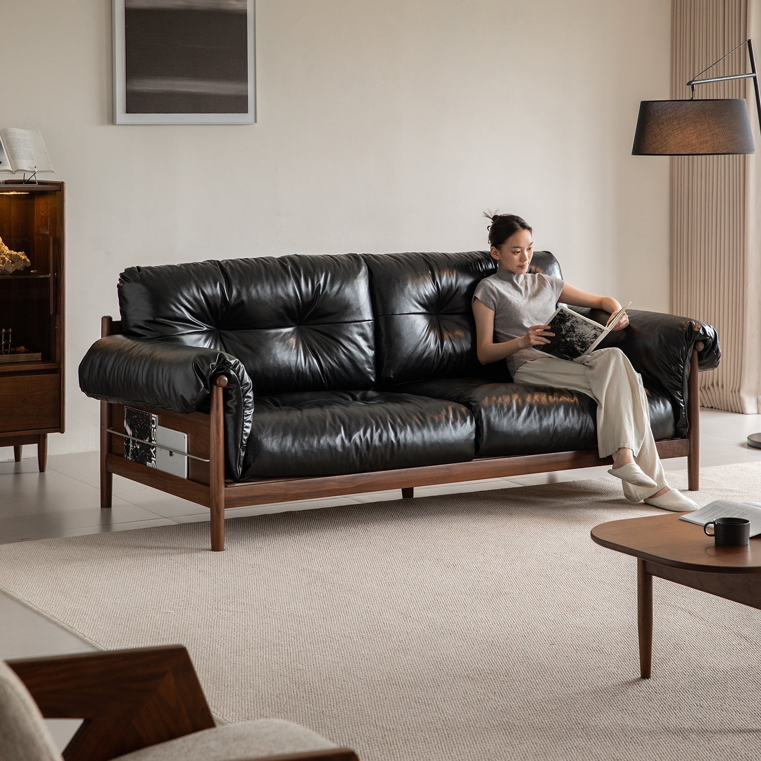 Crafted from premium North American walnut wood, this sofa exudes timeless elegance and warmth, enriching your living space with natural charm and durability.