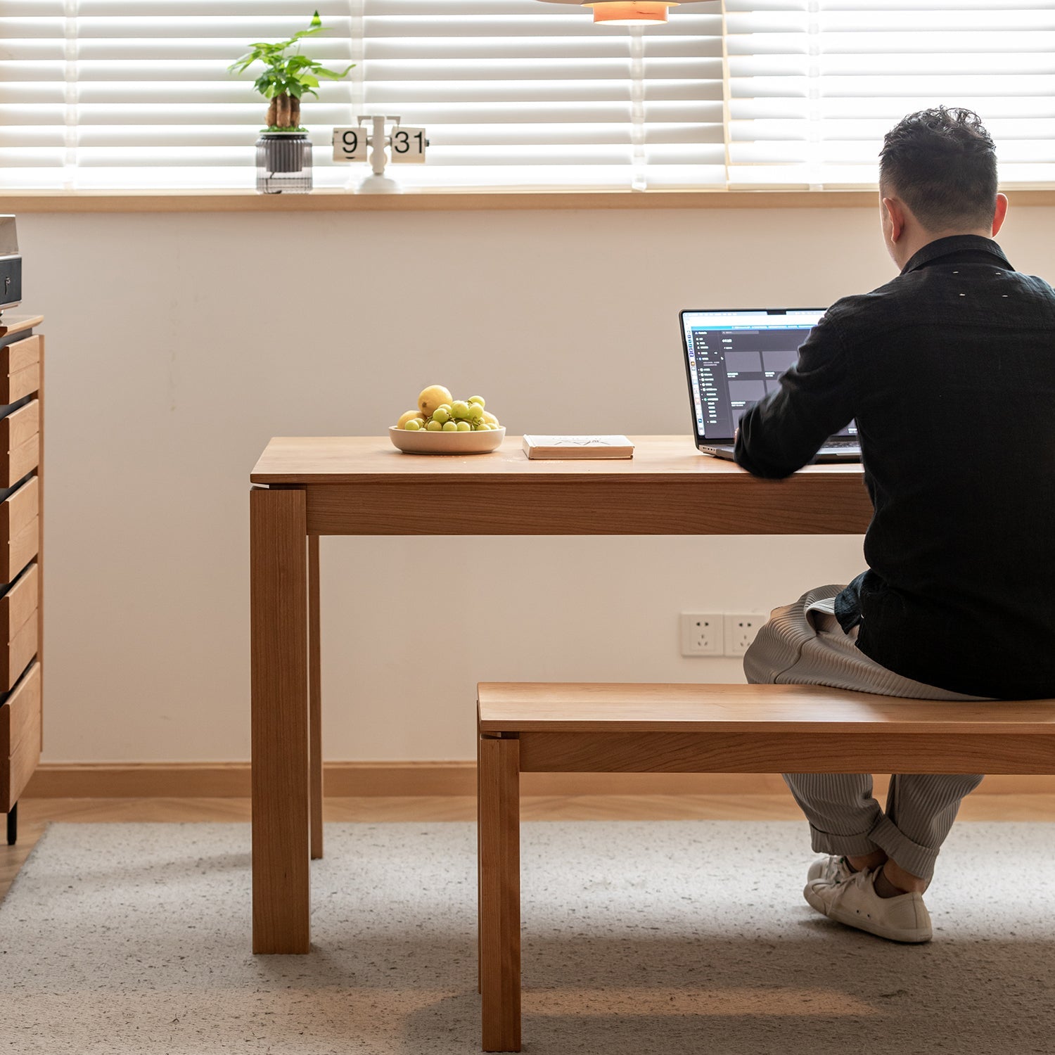 Japanese-inspired design and neutral tones allow it to pair seamlessly with dining tables or other home setups |