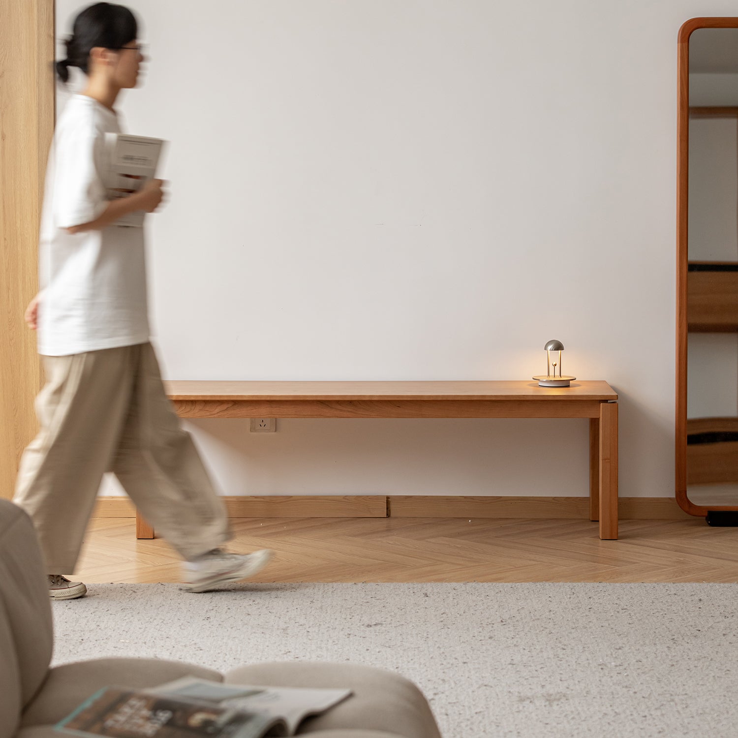 Minimalist Cherry Wood Dining Bench COASTAL: Elegant Scandinavian bench crafted from premium cherry wood with a spacious 350mm seat, sturdy legs, and timeless design.