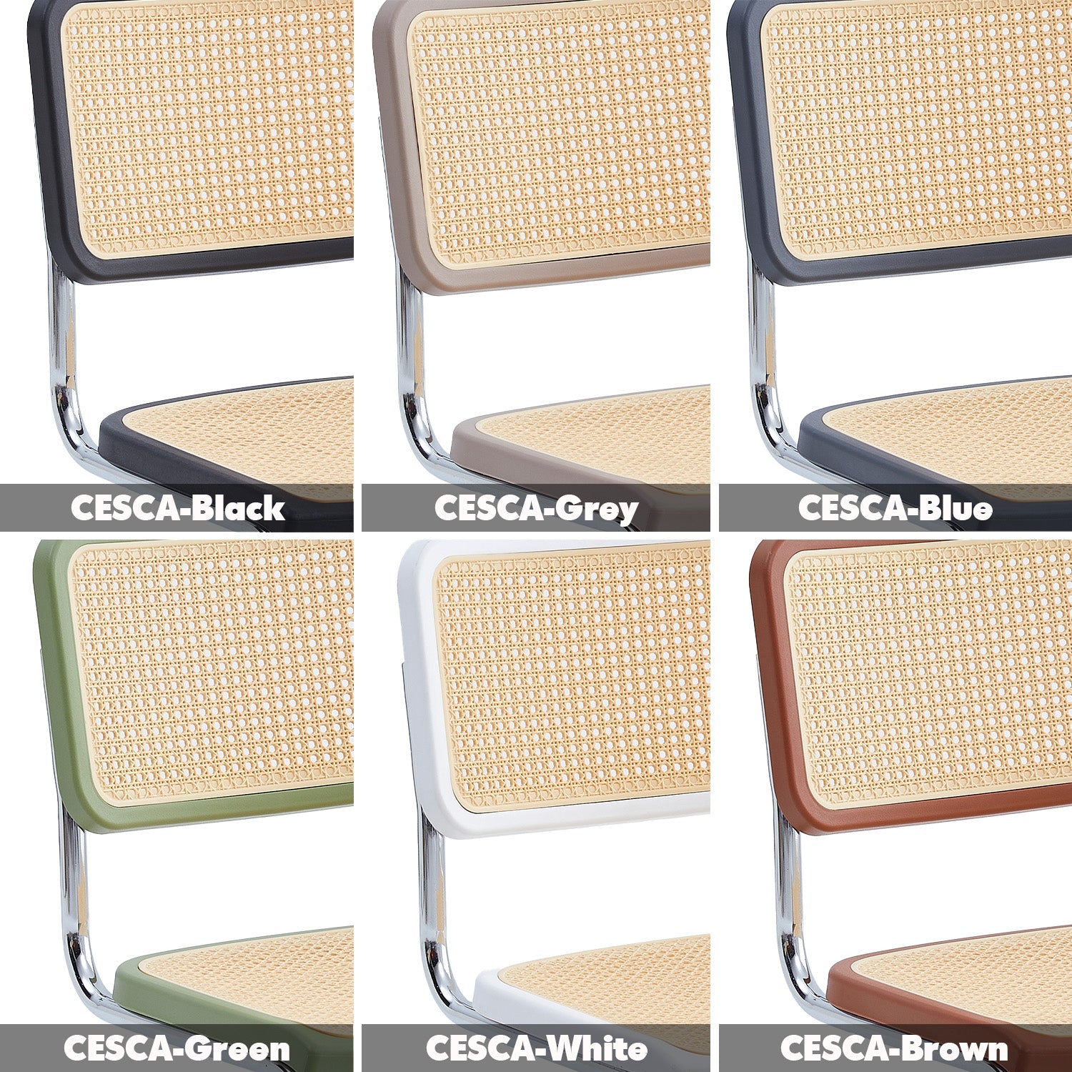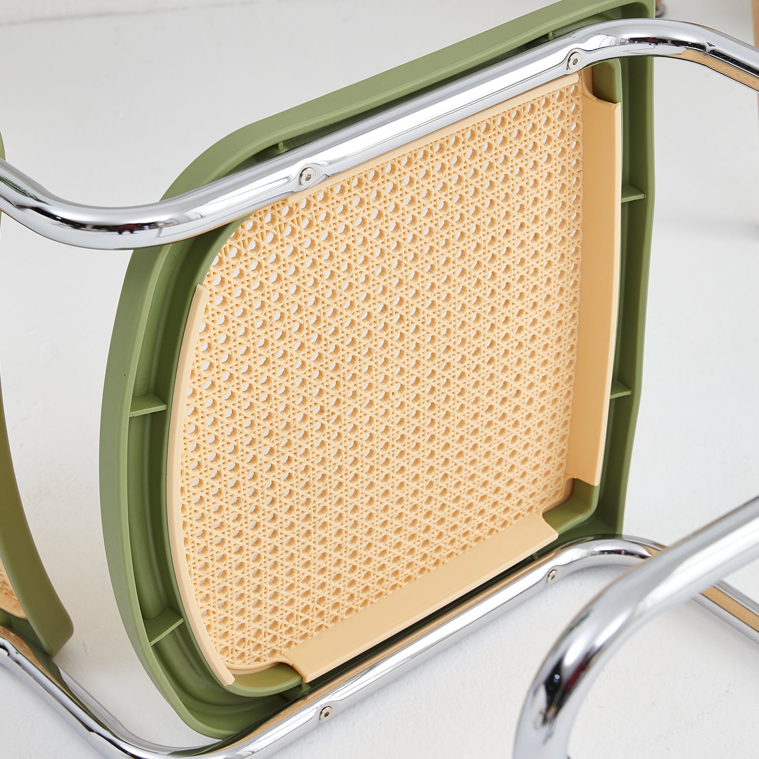 Scandinavian Plastic Dining Chair CESCA combines modern style with comfort and functionality. Featuring a rattan-like PP woven seat and backrest, it's smooth, eco-friendly, and easy to clean. The chrome-plated steel legs provide excellent weight capacity, while anti-slip foot pads ensure stability and floor protection. With a widened seat design for added comfort, CESCA is perfect for enhancing any dining space with sleek elegance and lasting durabilit