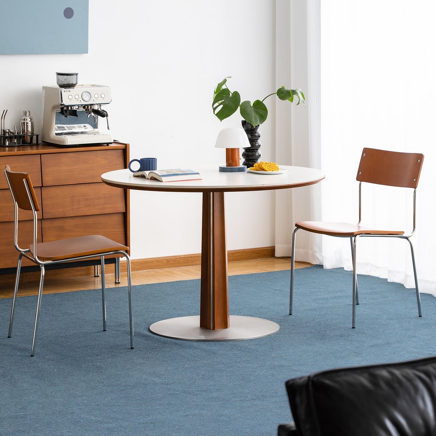 Stainless steel legs add shine and stability, giving reliable strength and style for modern dining spaces.