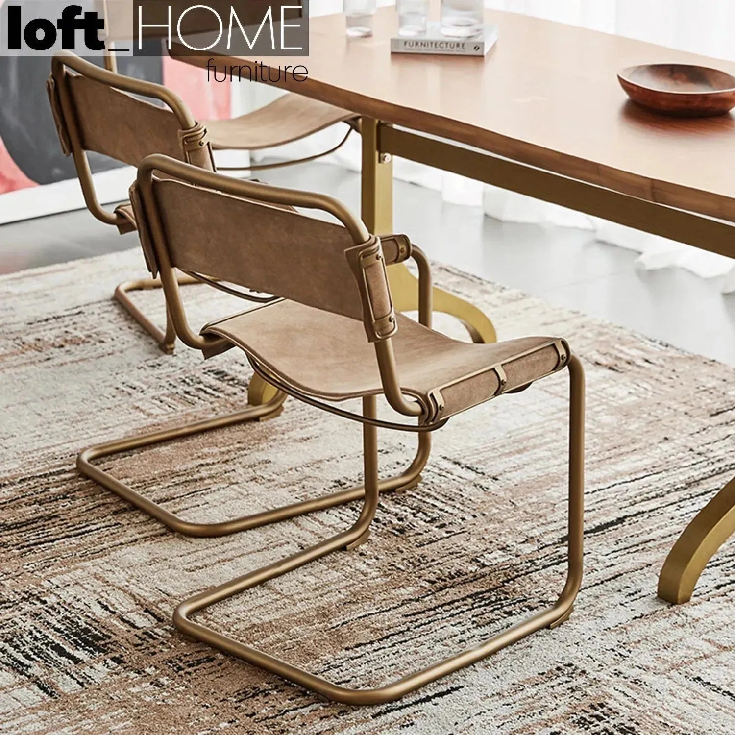 Visualize the inviting serenity and chic elegance of the antique real leather dining chairs when you return home after a busy day. The combination of full-grain cowhide leather chairs and brass finishing with steel lends these chairs a touch of luxury and sturdiness.