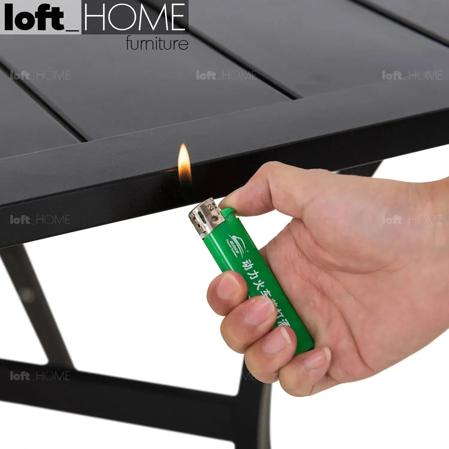 The legs and worktop comprise steel with a polyester powder coating that provides anti-rust, waterproofing to guarantee sturdiness in the outdoor environment. |