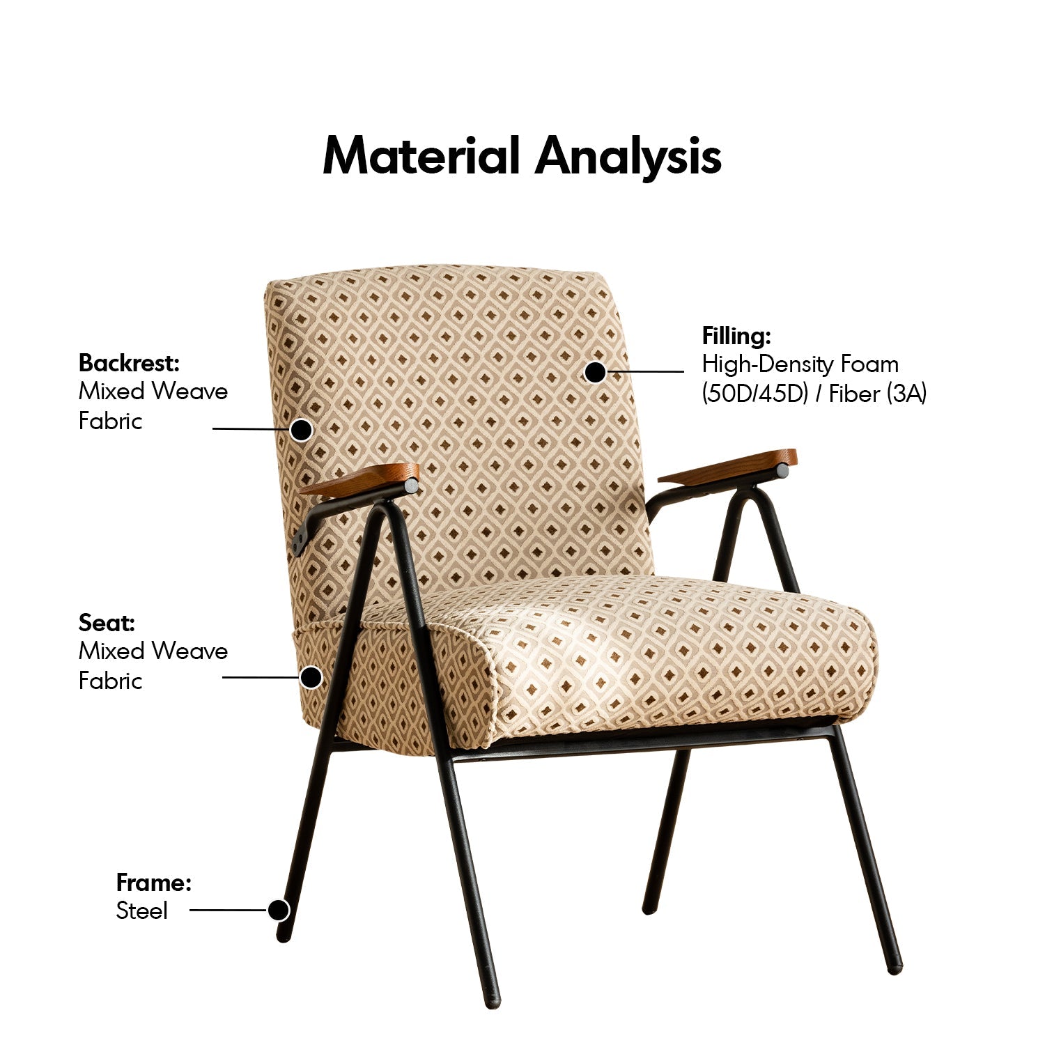 Vintage Mixed Weave Fabric 1 Seater Sofa WHEAT features jacquard elegance, sofa-like comfort, and sturdy support perfect for stylish, cozy corners.
