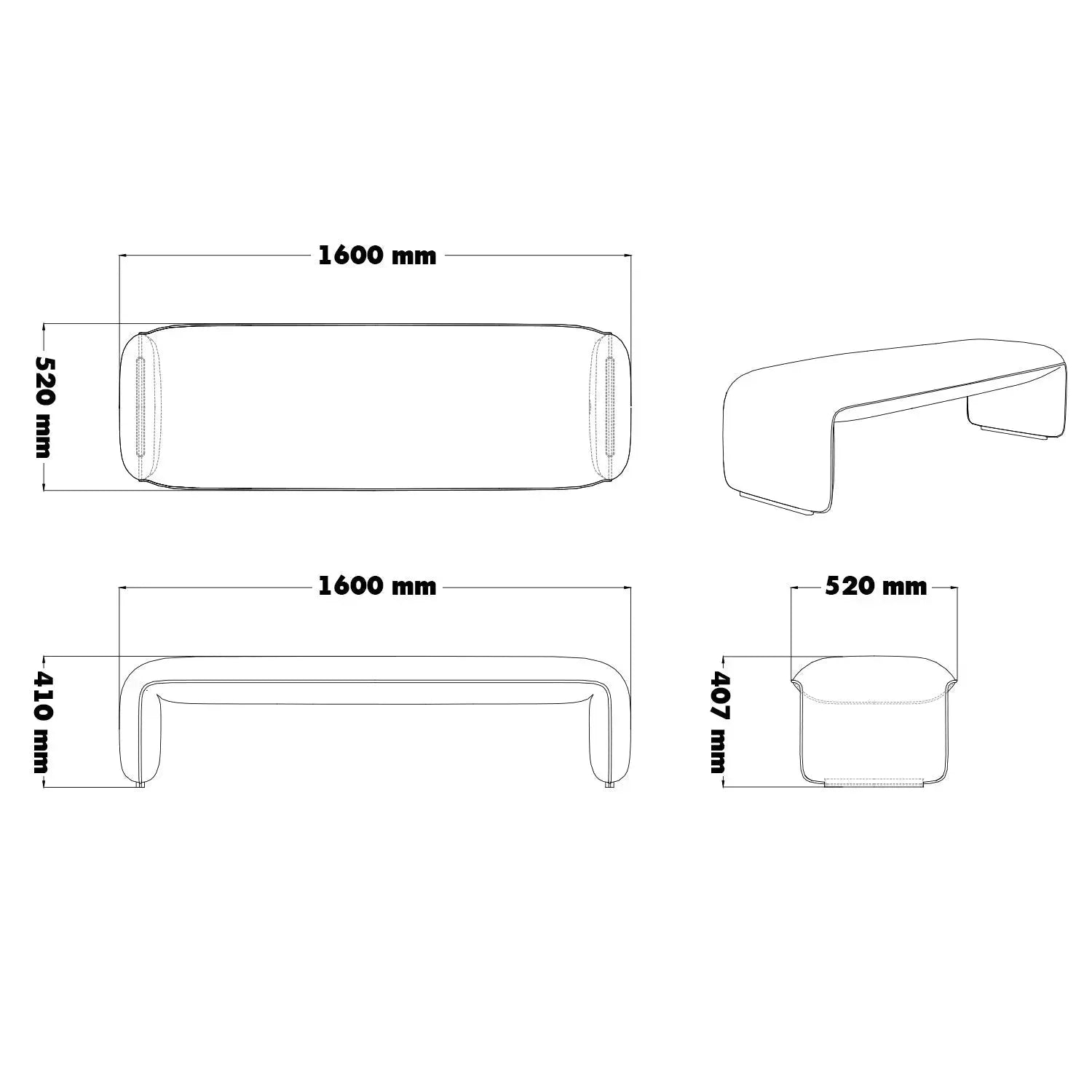 L1600 x W520 x H410mm