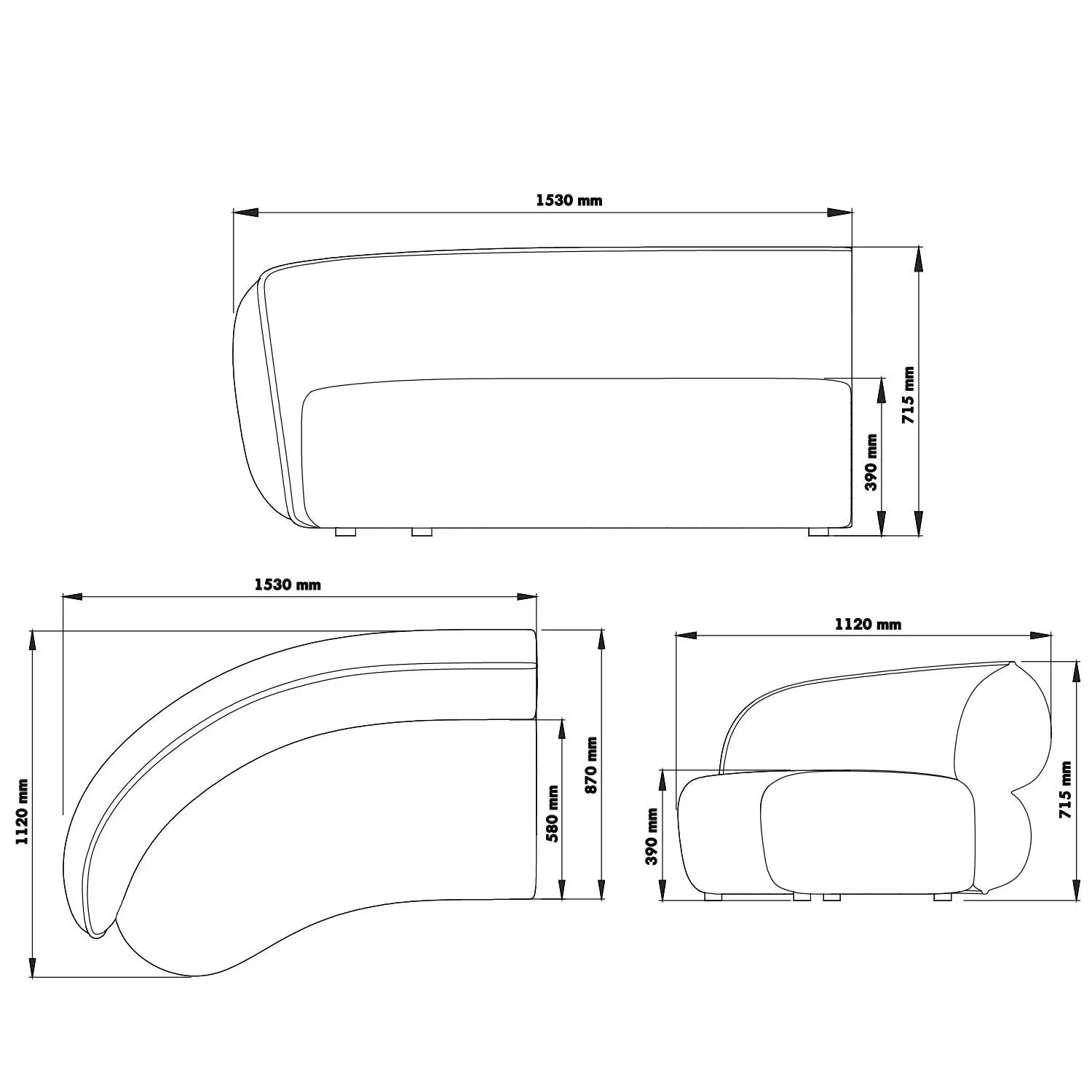 L1530 x W1120 x H715mm |