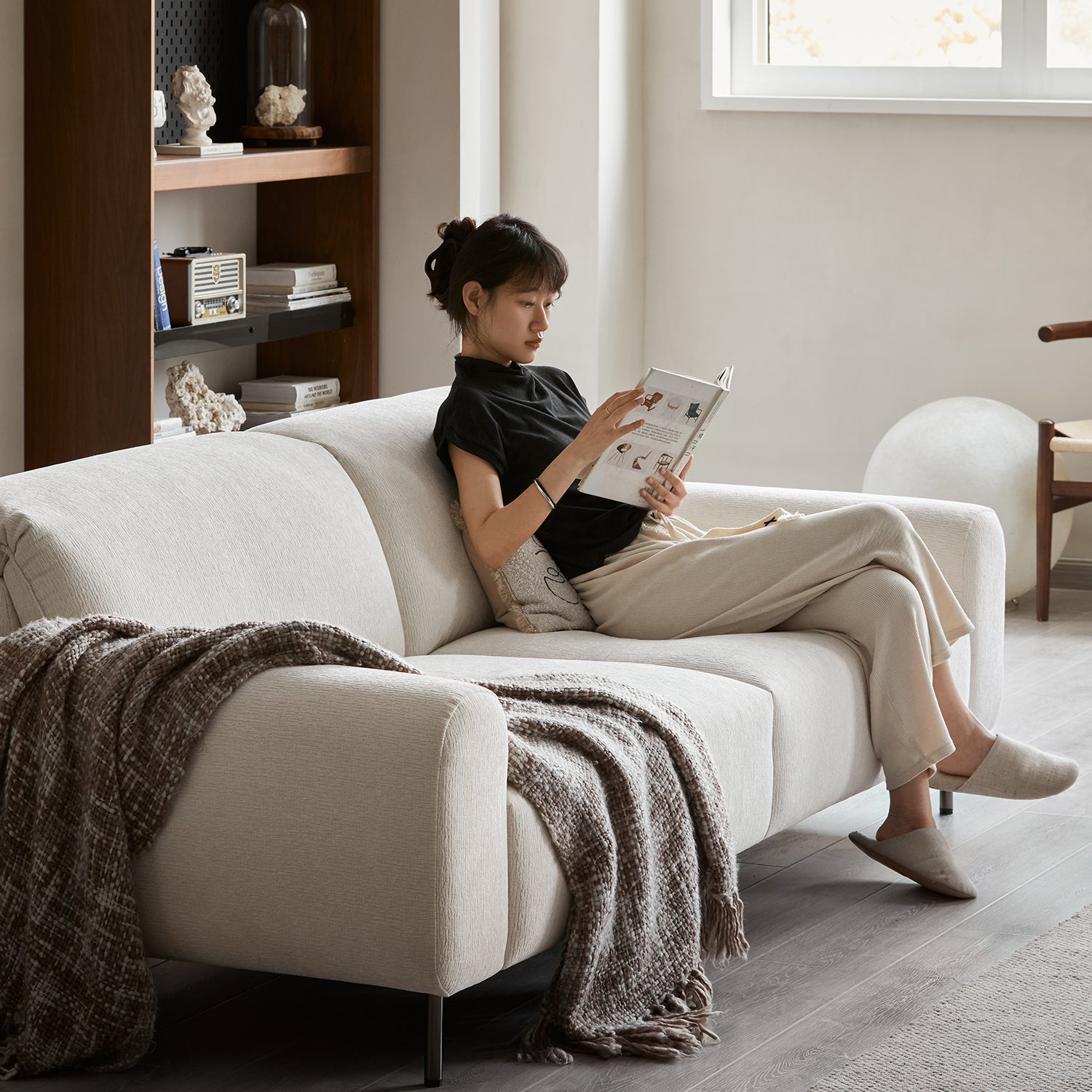 Minimalist Chenille Velvet Fabric 2 Seater Sofa DRIFT delivers soft chenille comfort balanced support and a calm minimalist look designed for relaxed modern living spaces.