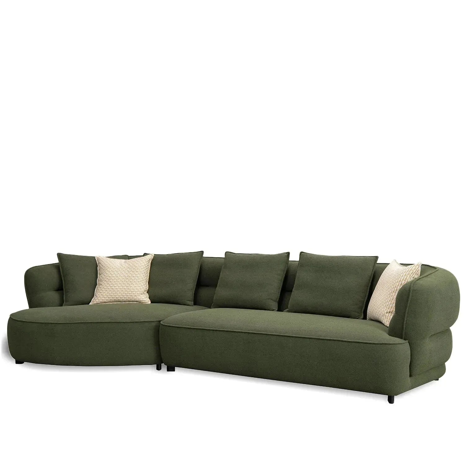 Transform your living space with the Minimalist Sherpa Fabric L Shape Sectional Sofa FORES 3+L. Featuring elegant greenery upholstery and solid pine wood legs, this sofa combines chic design with exceptional comfort. Its rounded shape and versatile L-shape configuration offer a modern yet warm and inviting aesthetic, making it the perfect addition to any contemporary home.