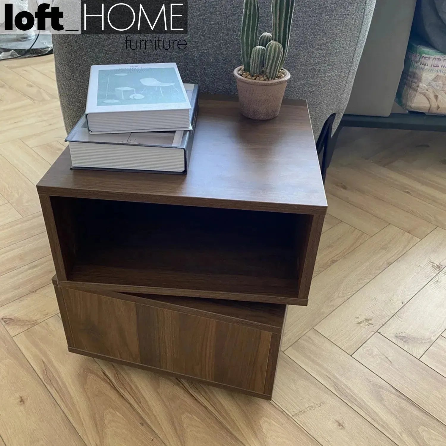 Walnut veneer wood, crafted, adds warmth and elegance. Its revolting design turns it into a playful, fun, and modifiable highlight. With a small table and walnut veneer, this will look good in most settings. Consider walnut veneer and rotation, embodying contemporary style and flexibility in your home decoration.