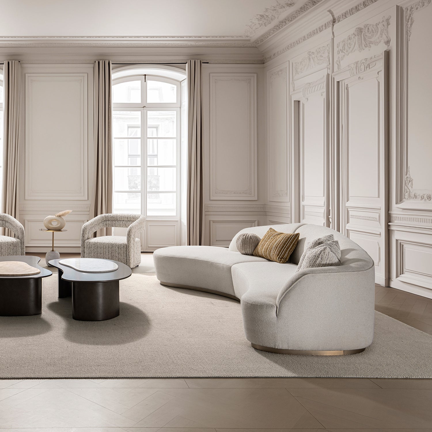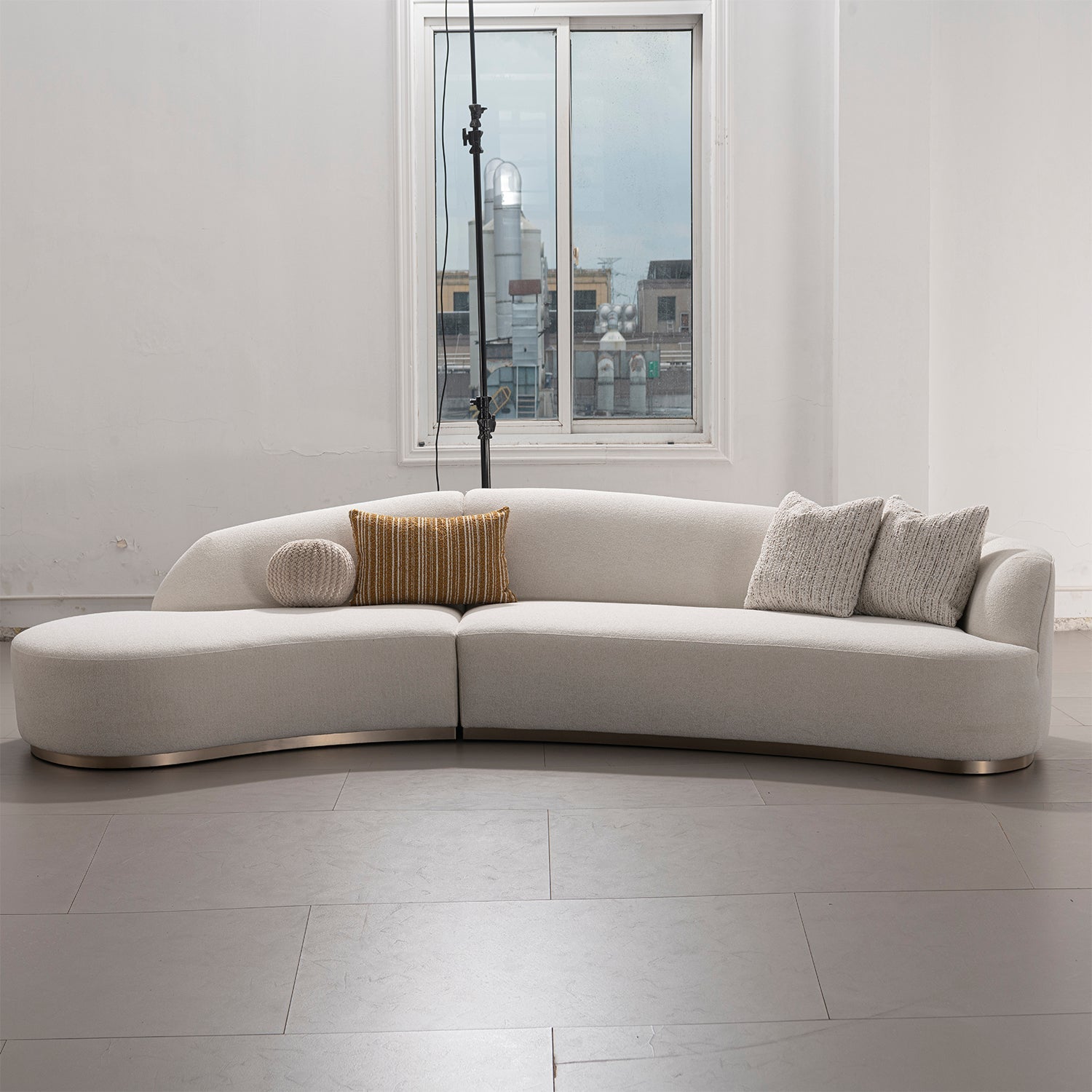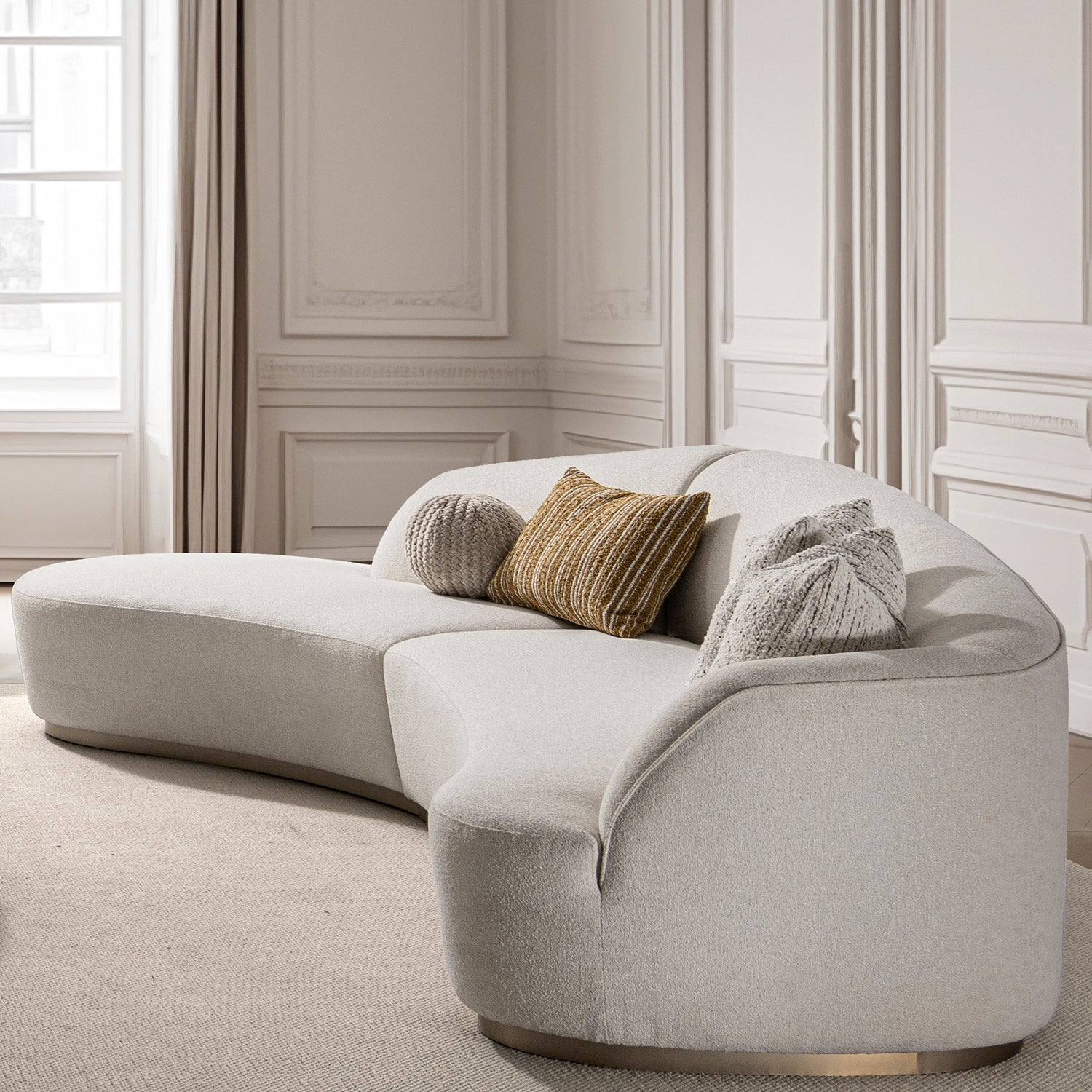 Streamlined L-shape with curved design brings light luxury charm and simplicity to your living room. |