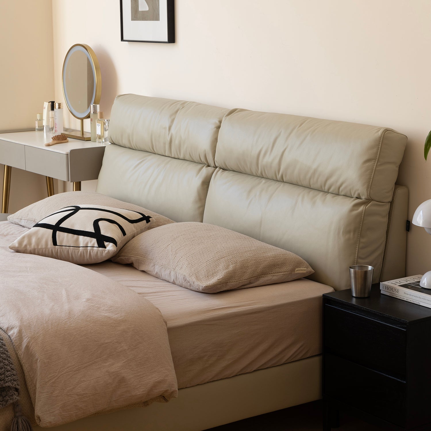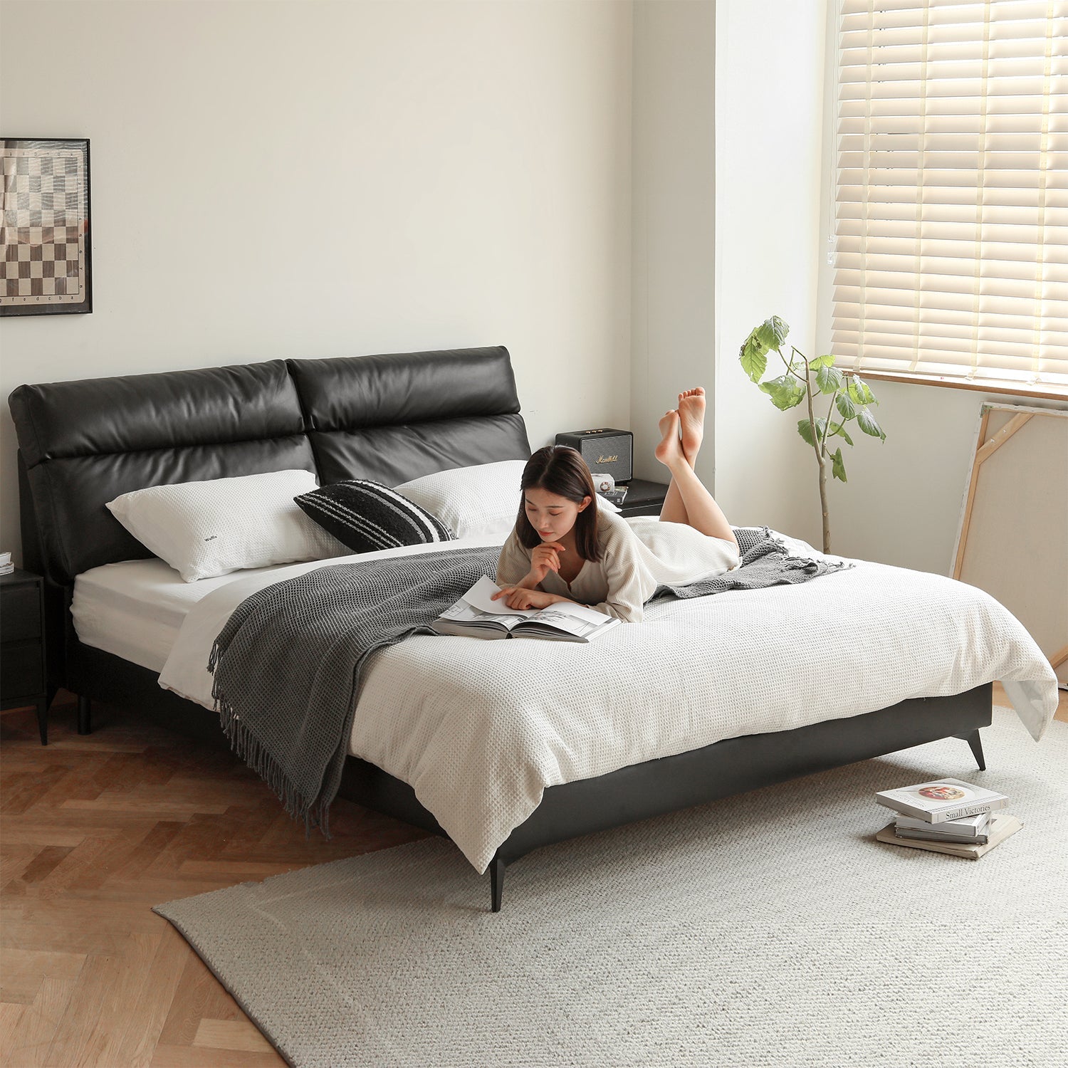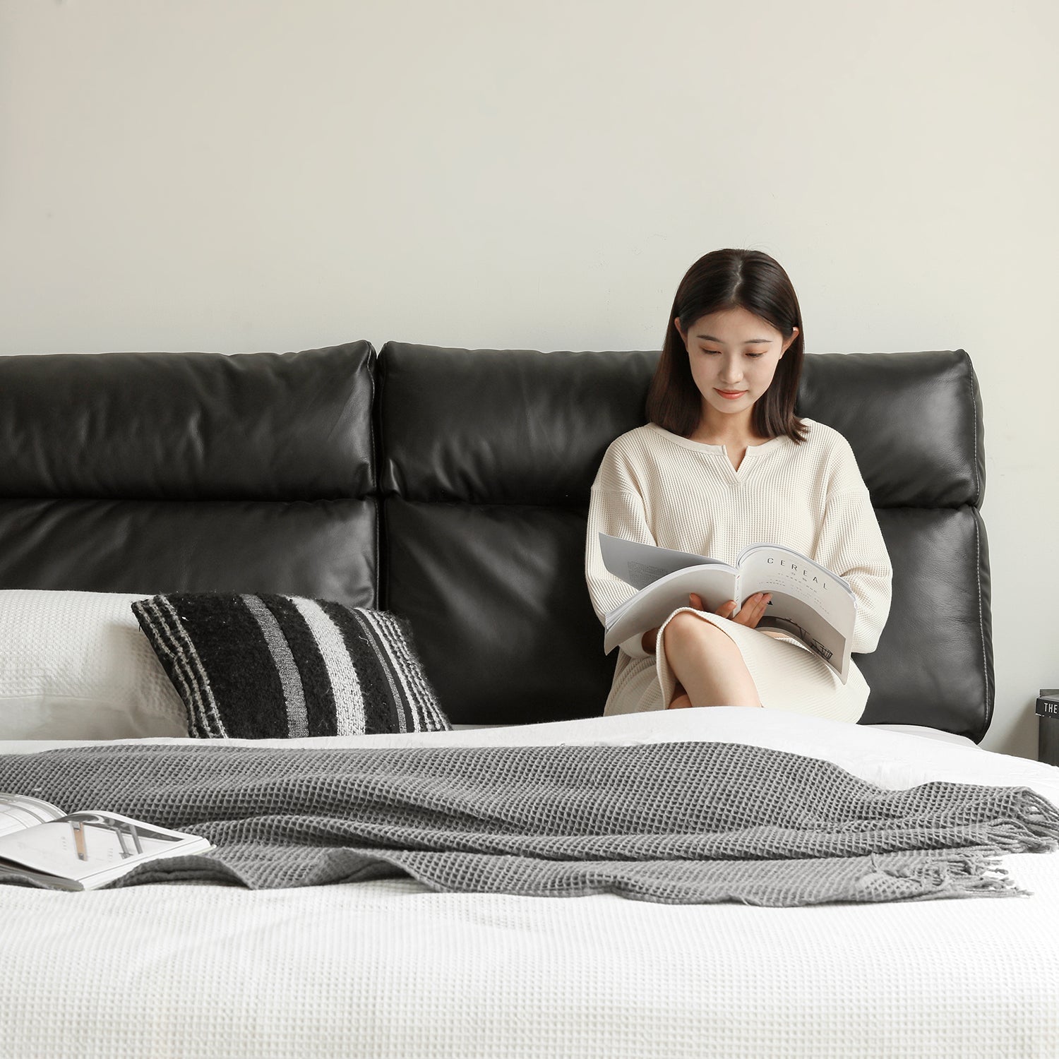 Modern Genuine Leather Bed Frame DUSKO combines ergonomic angles, plush feather fill, and natural leather softness designed for lasting comfort and everyday elegance.