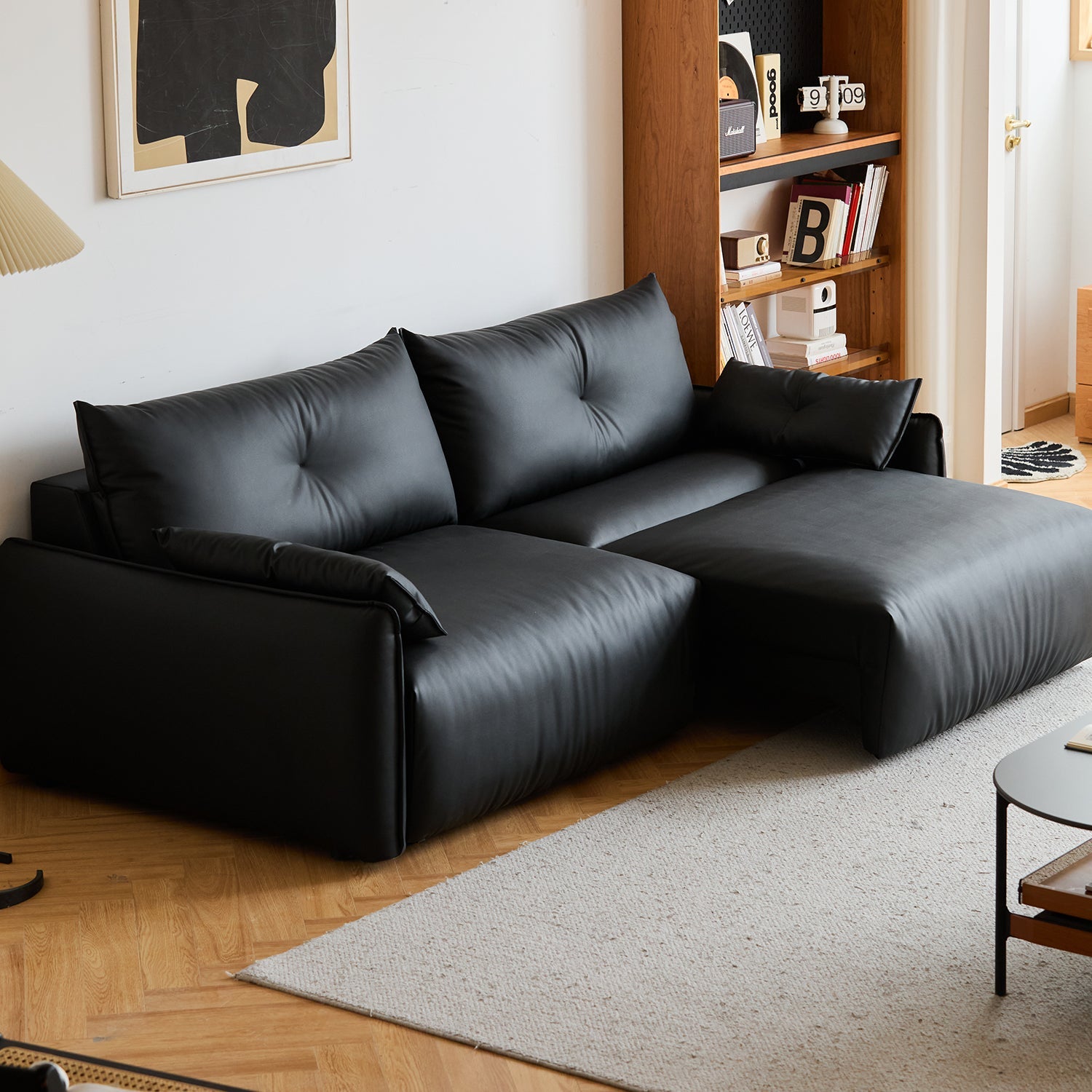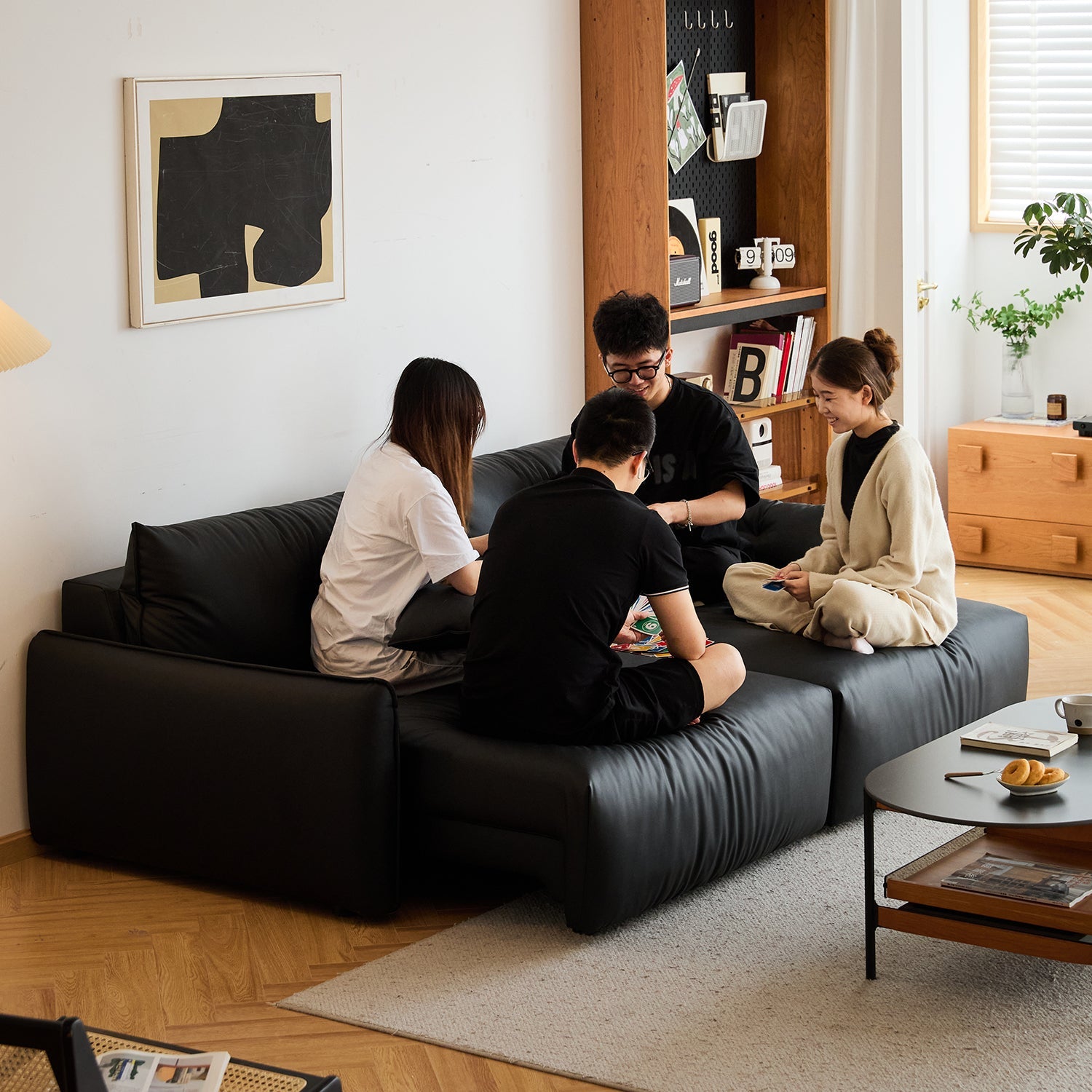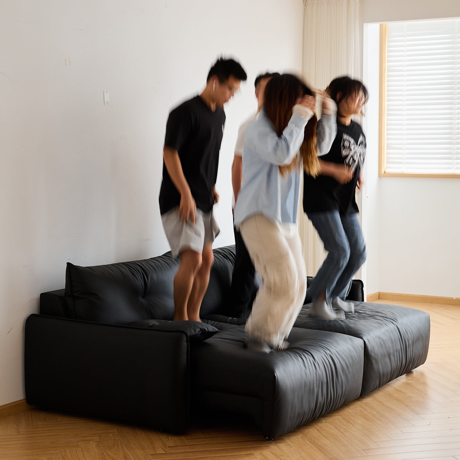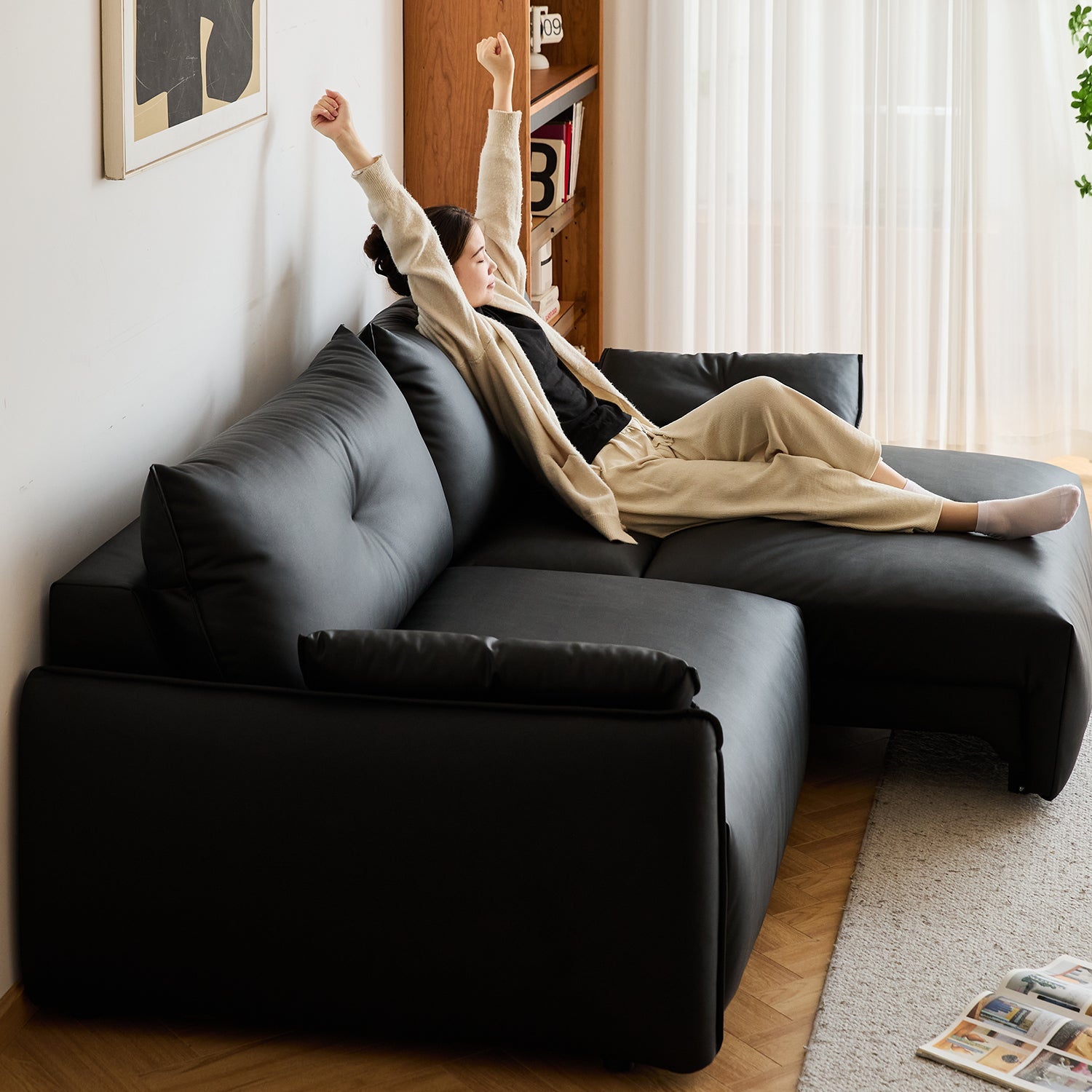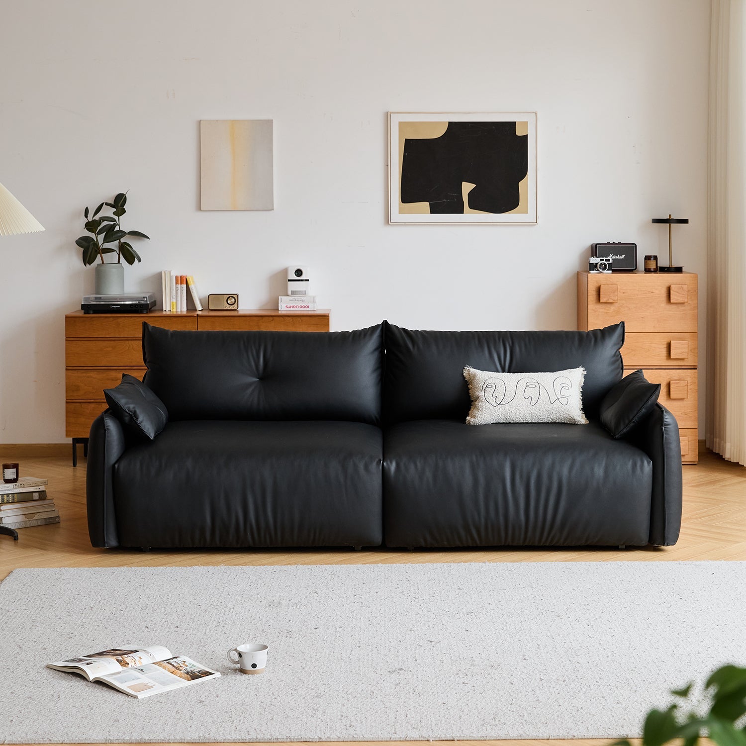 The sofa uses scratch-resistant, waterproof leather that is soft to the touch and easy to clean, reducing worry over daily wear and tear. |