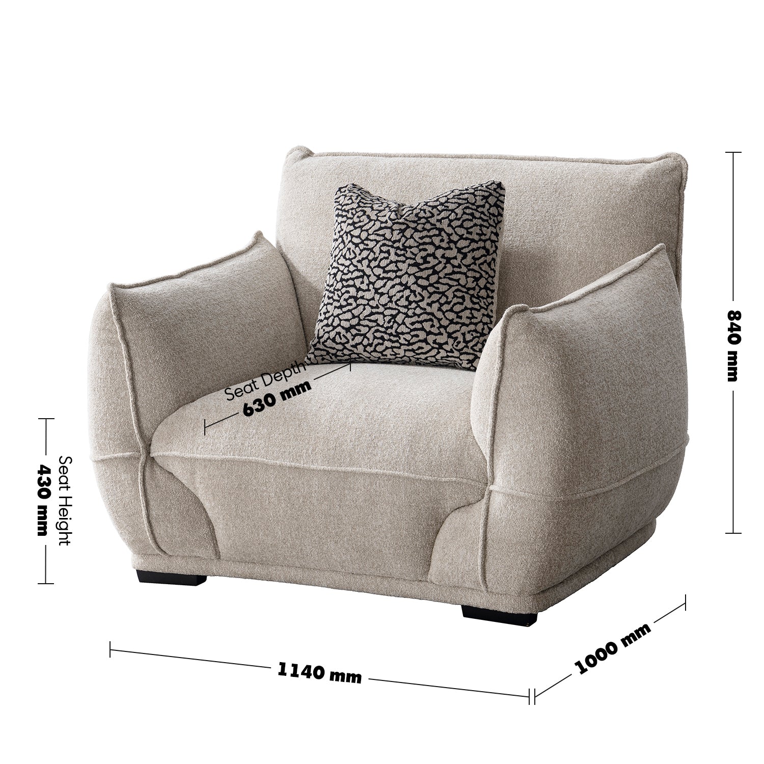 Modern Mixed Weave Fabric 1 Seater Sofa CLOUDY wraps you in softness with deep seats, smooth curves, and plush support perfect for cozy modern living.