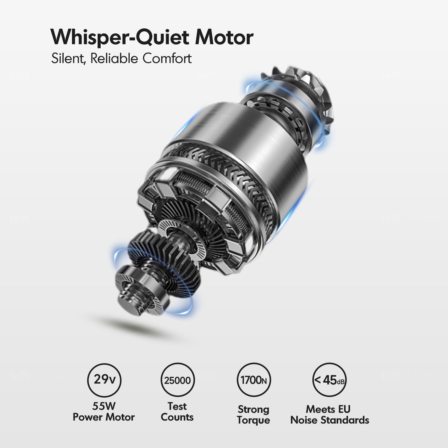 Whisper-Quiet Motor & Steel Frame: