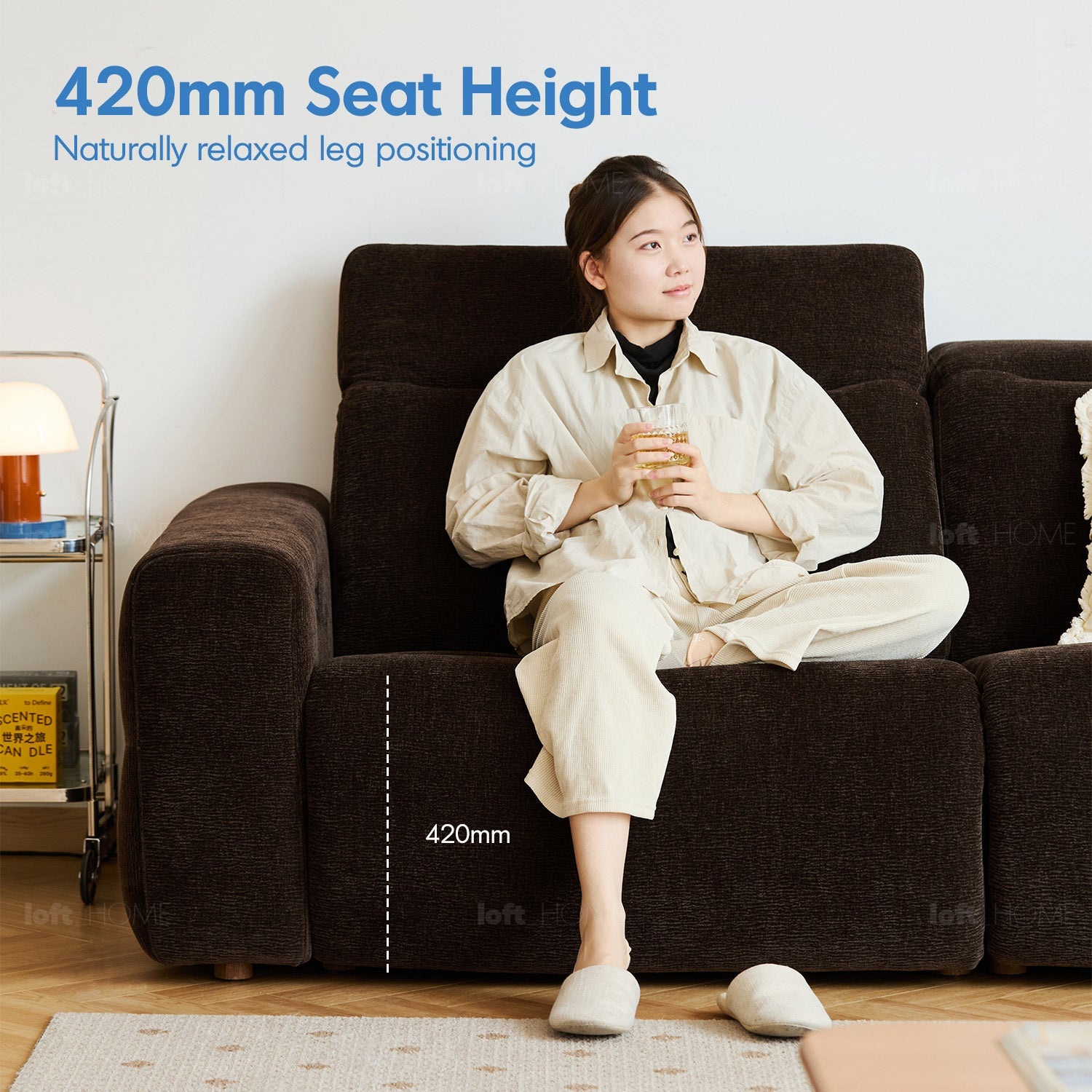 590mm seat depth with premium filler-free foam for resilient, breathable, and cushy comfort.